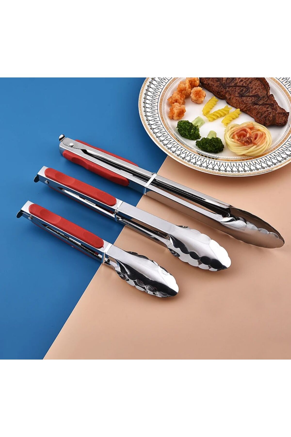 2 Li Set Metal Mangal Maşası Slikon Saplı