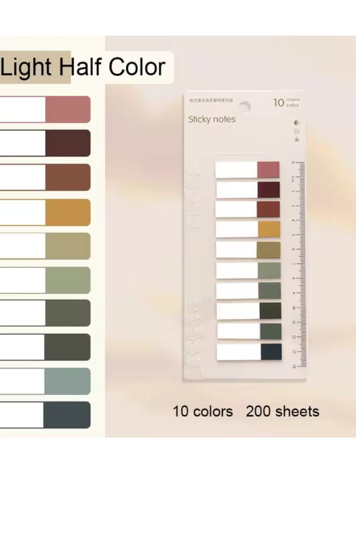 10 Renk Cetvelli Toprak Tonlar Sticky Şeffaf Postit Not Kağıdı 200 Yaprak