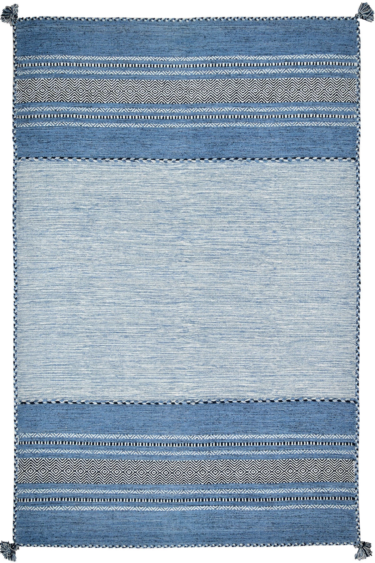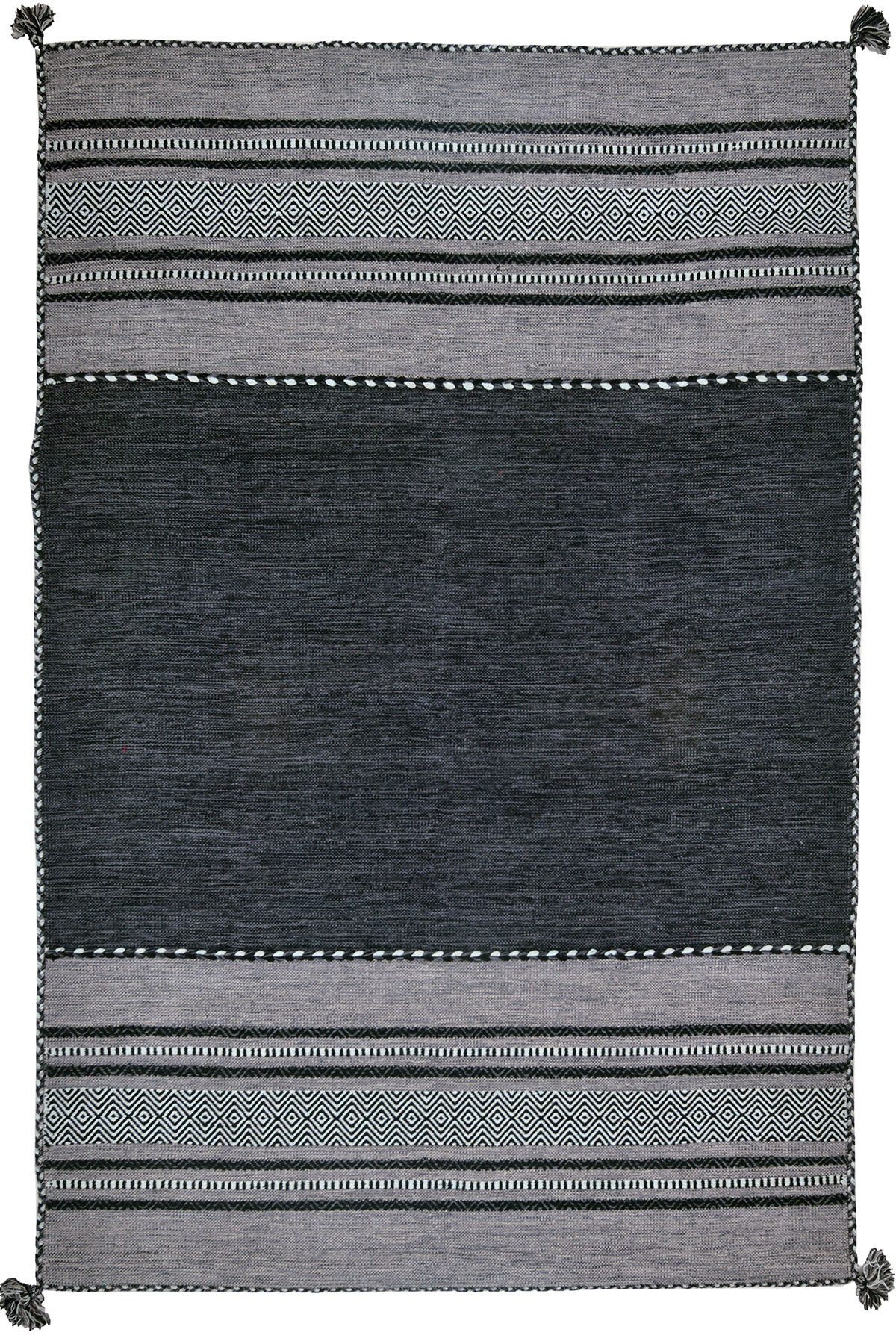 El dokuması tekniğiyle üretilmiş olan bu kilim, çizgili deseniyle modern ve şık bir görünüm sunar