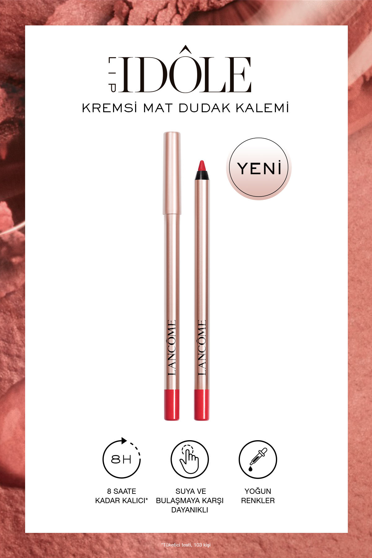 Kremsi mat dudak kalemi 8 saat boyunca kusursuz kalıcılık* güzellik rutinizi bir adım öteye taşıyın! Lancôme'un yeni lip ıdôle kremsi mat dudak kalemi, suya dayanıklı formülü ve uzun süre kalıcı formülü ile dudaklarınızı anında şekillendirir ve belirginleştirir.