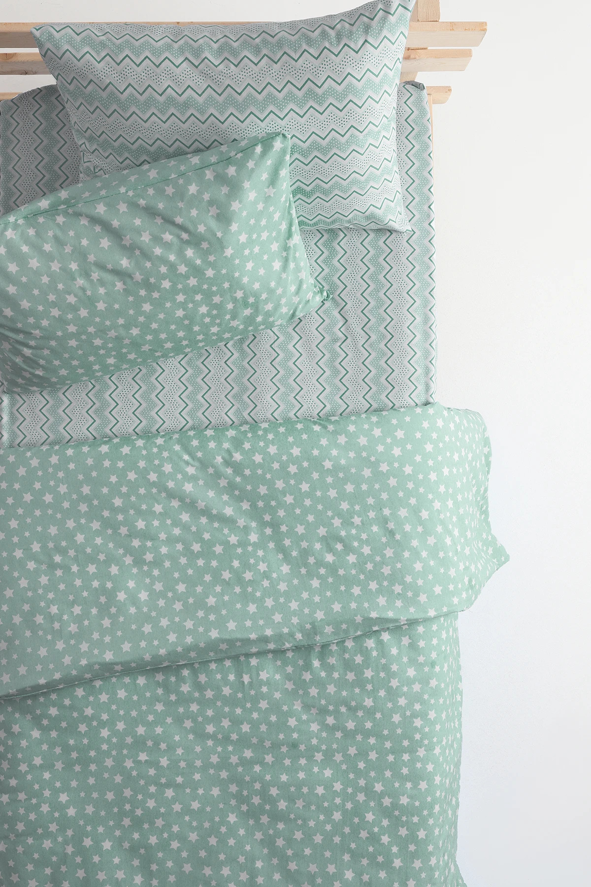Kutu İçeriği: 1 Adet Nevresim, 1 Adet Lastikli Çarşaf, 2 Adet Yastık Kılıfı Kutu Özelliği: Şeffaf Jelatin Paket Ürün Boyutu: Nevresim: 160x220 cm, Çarşaf: 100x200 cm, Çarşaf Yüksekliği: 30 cm, Yastık Kılıfı: 50x70 cm Malzeme Bilgisi: %70 Pamuk, %30 Polyester Bakım Bilgisi: 30 derece makinede yıkanabilir