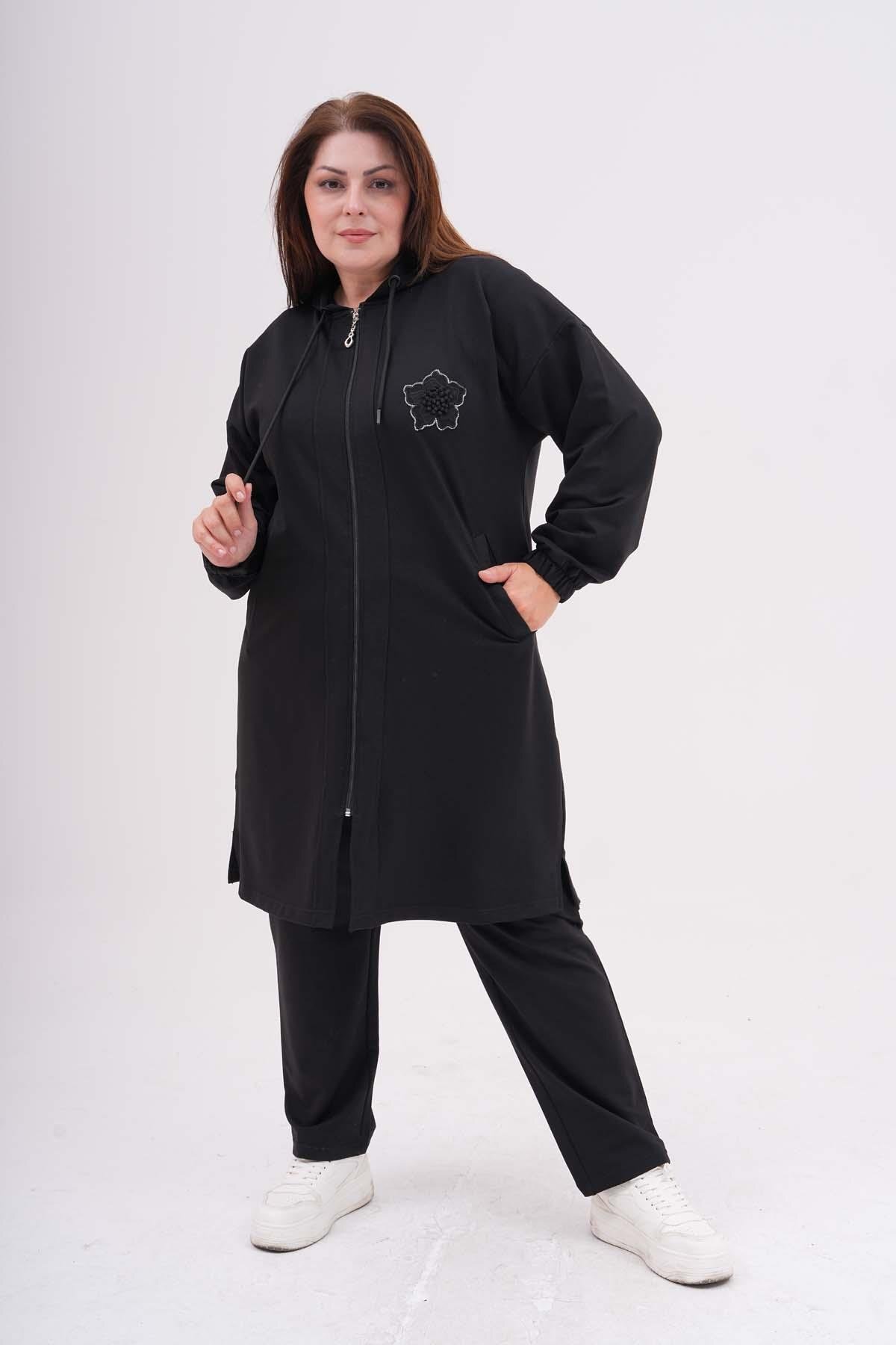 Büyük beden koleksiyonuna özel olarak tasarlanmış bu eşofman takımı, her vücut tipine uygun geniş beden seçenekleriyle rahatlık sunar