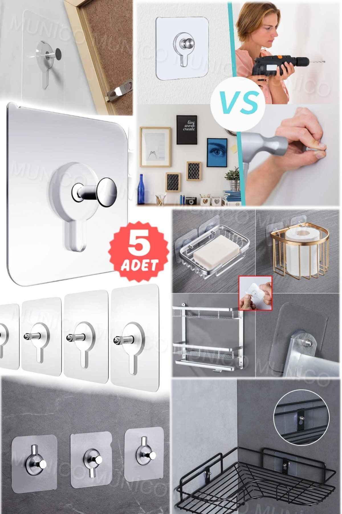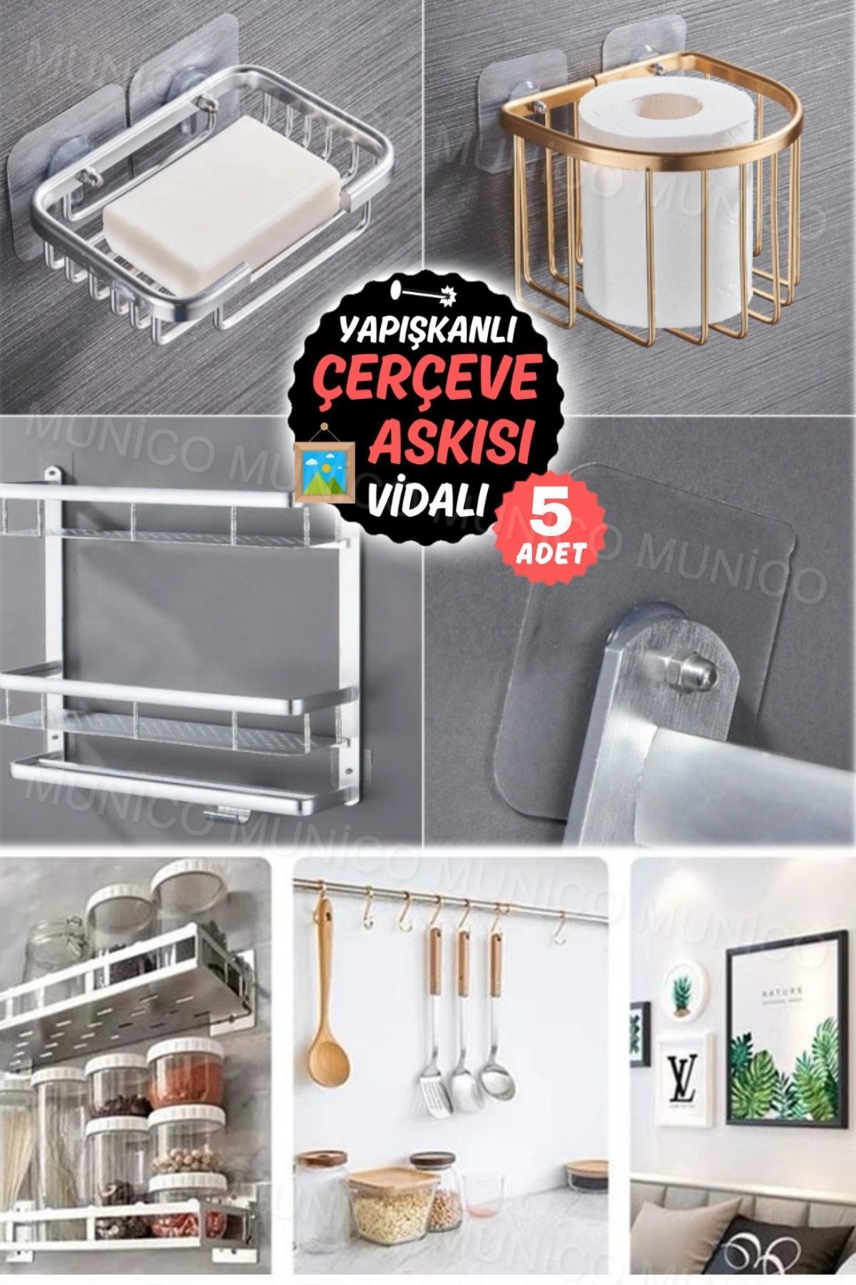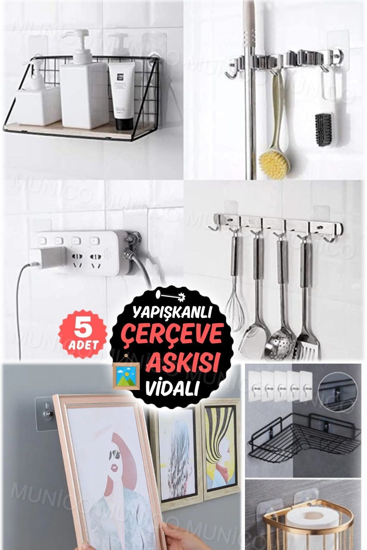 5 Adet Delmeden Resim Askısı Poster Çerçeveleriniz İçin Duvara Zarar Vermeyen Yapışkan Kanca Seti
