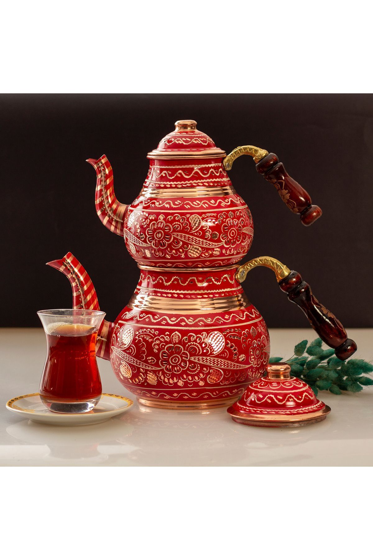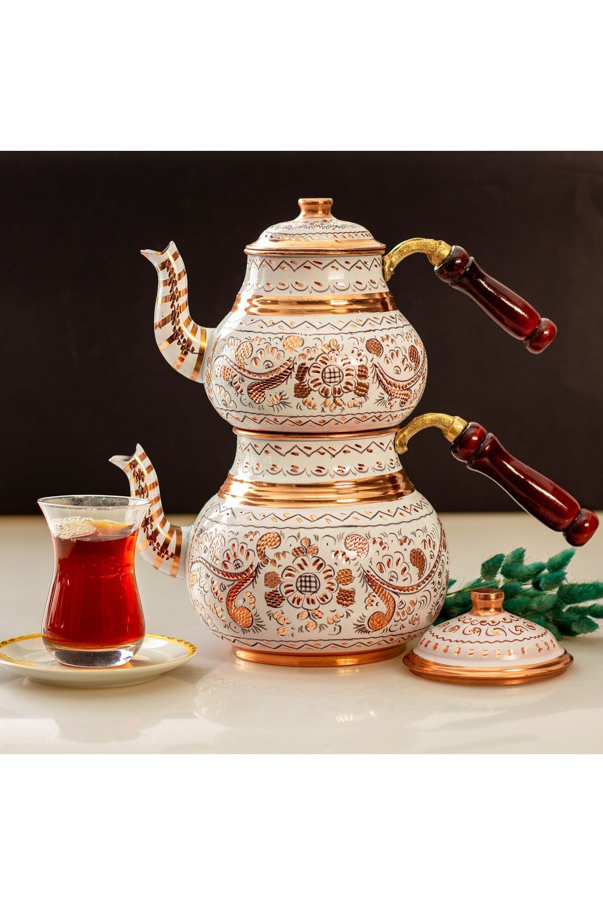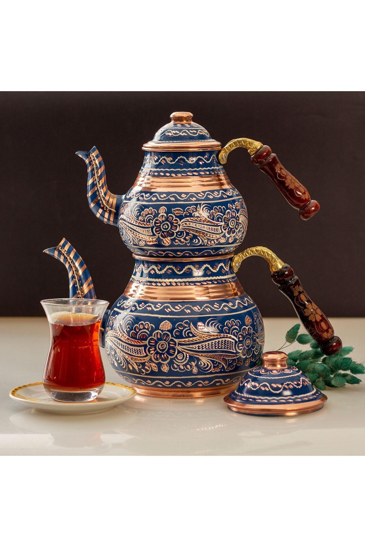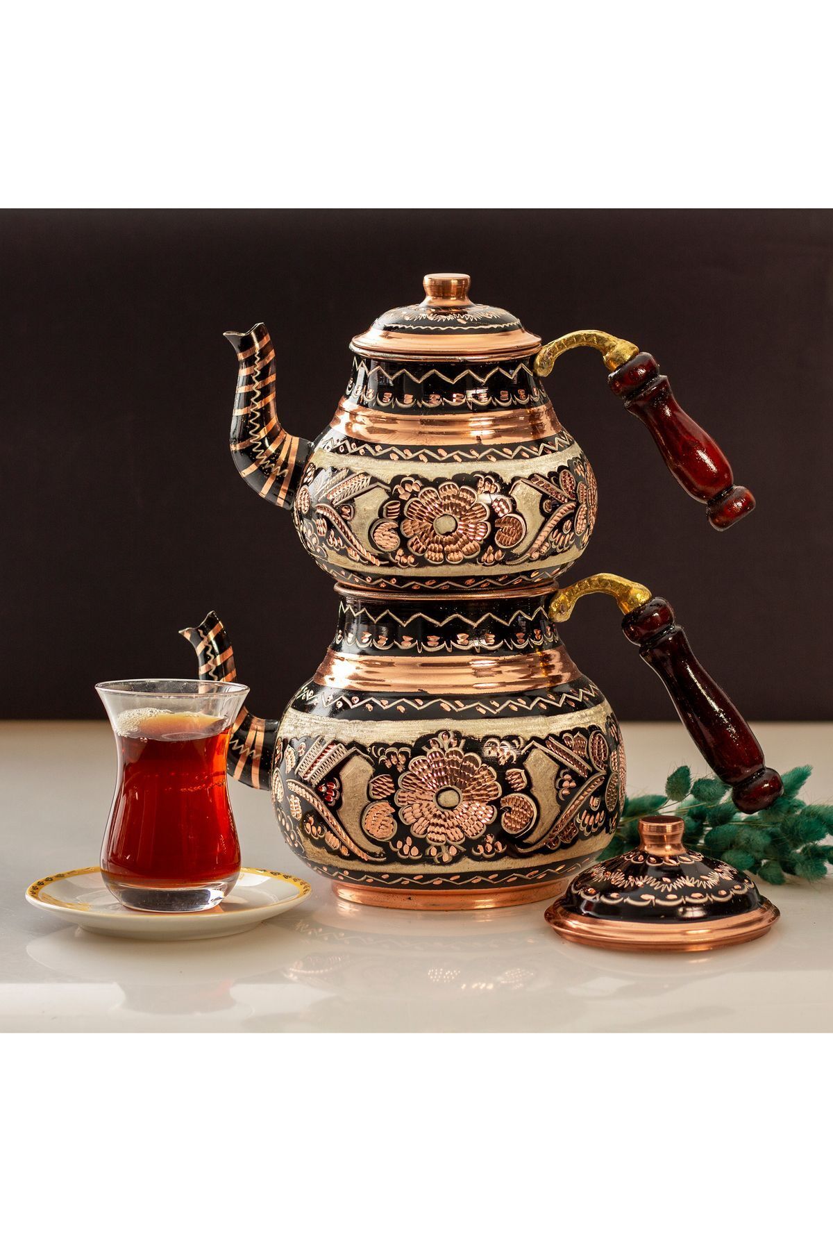 - El yapımı bakır çaydanlık, uzun ömürlü ve dayanıklı kullanım sunar