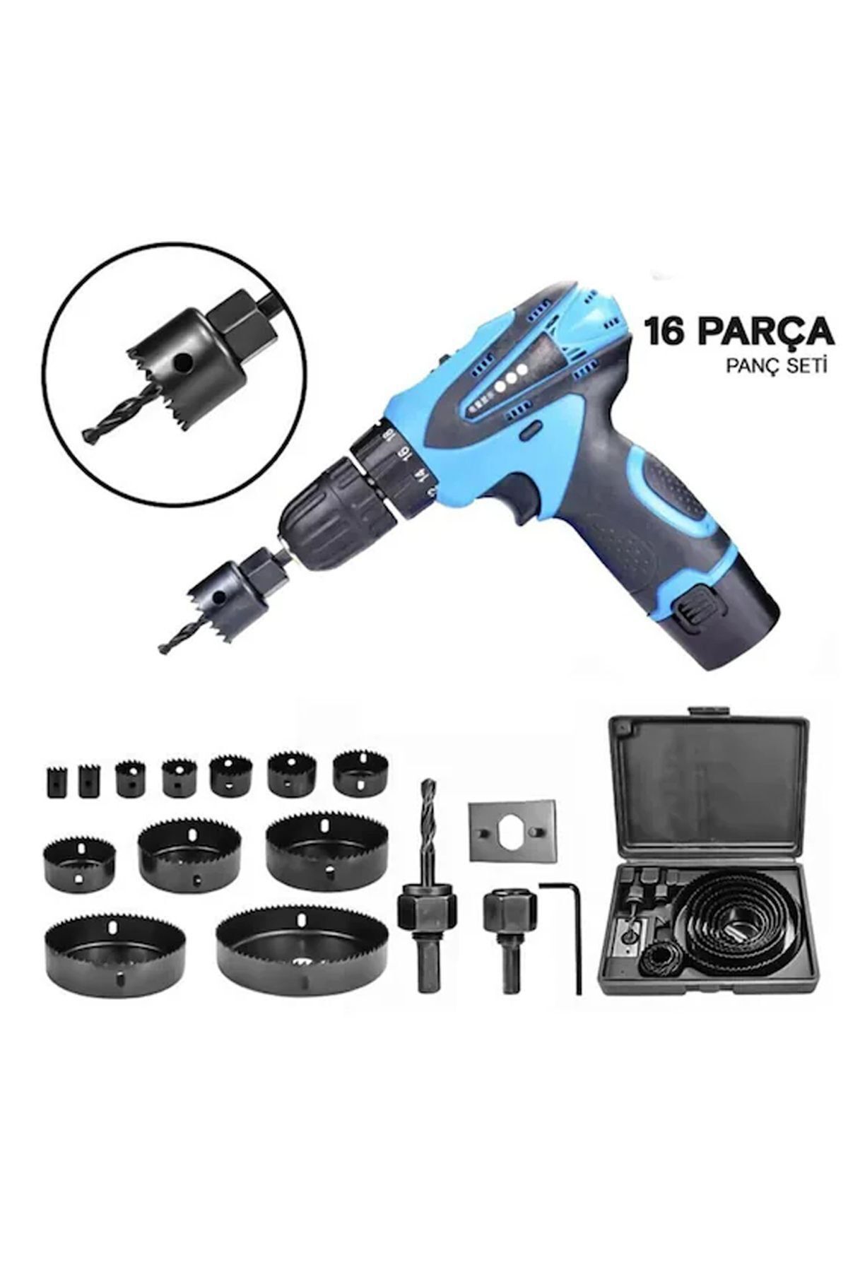 Profesyonel 16 Parça Panç Seti Kartonpiyer Sunta Alçıpan Delici Testere Takımı Kartonpiyer Açma