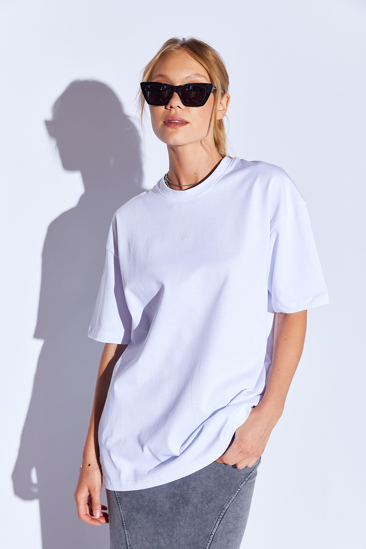 Beyaz Kalın Soft Dokulu enjeksiyon minimal baskı detaylı Oversize %100 Pamuk unisex T-shirt | 5397 - %100 pamuk materyalden üretilmiş, nefes alabilen dokusuyla gün boyu konfor sunar.