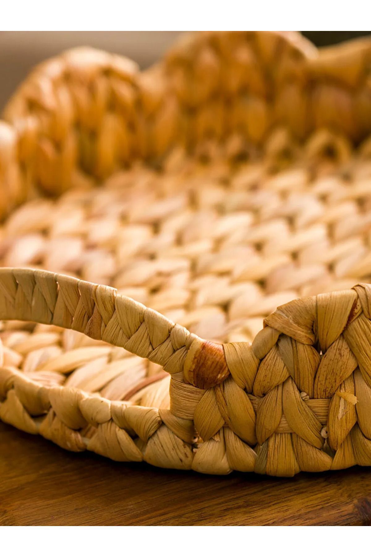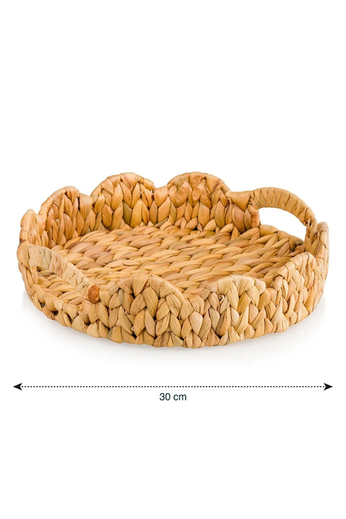 LCW HOME Açık Kahverengi Yuvarlak Hasır Dekoratif Tepsi 30 Cm