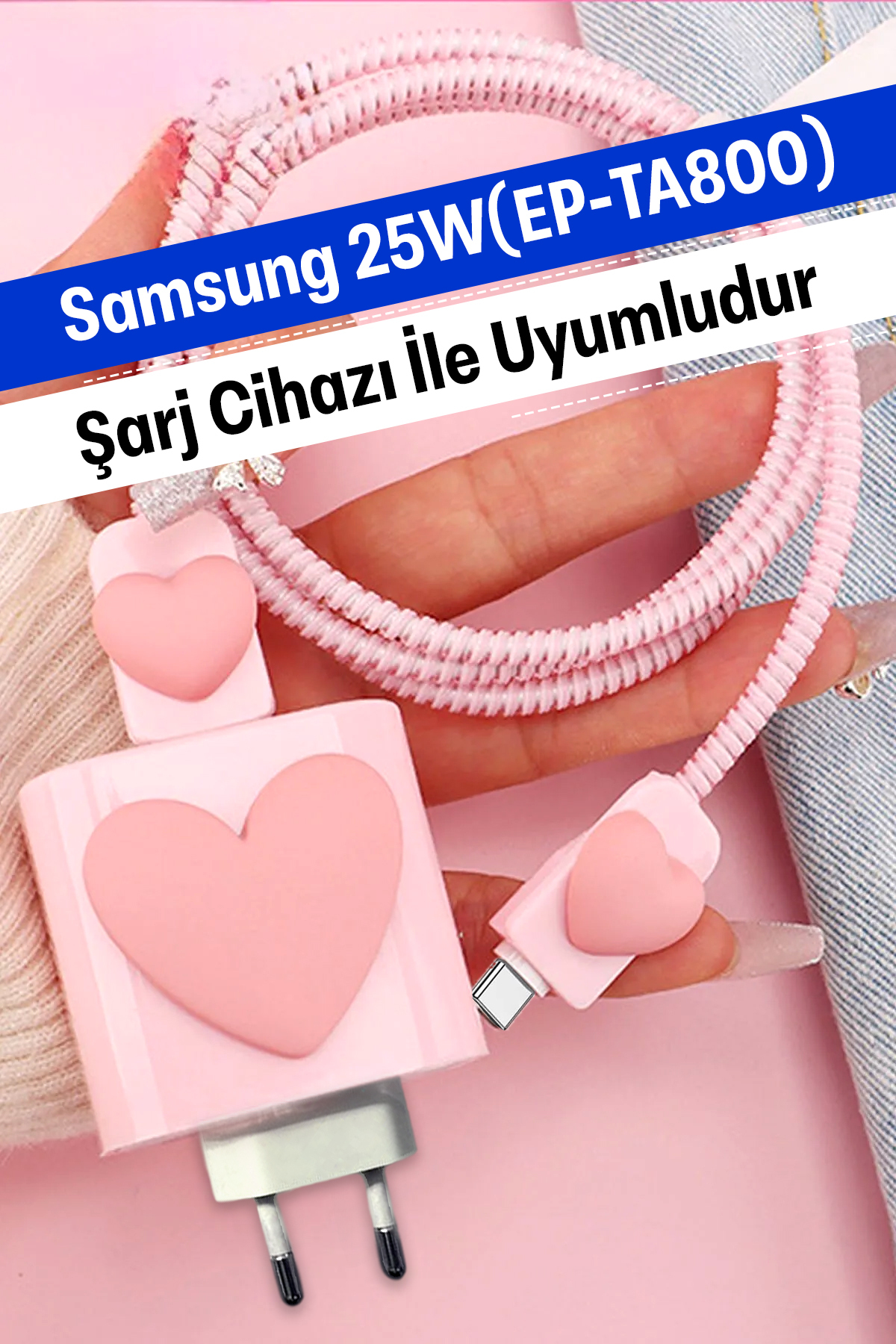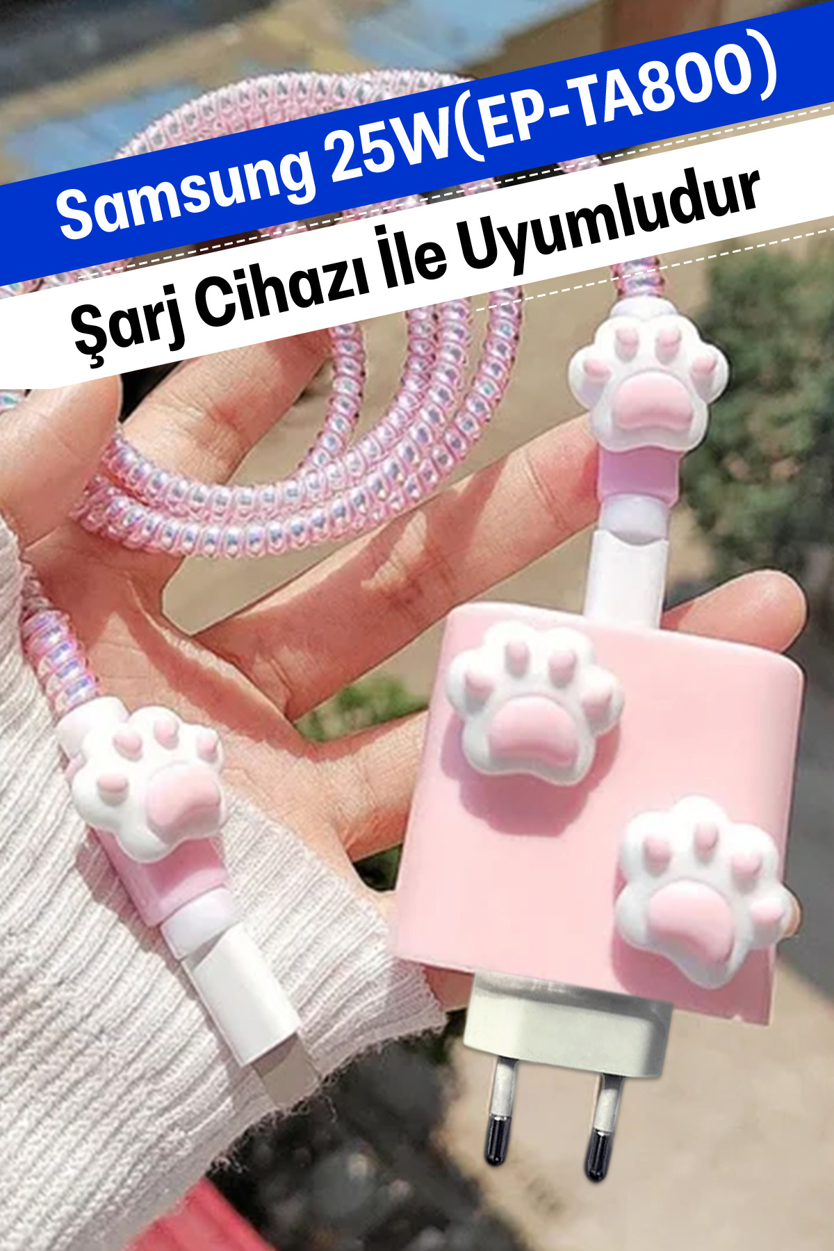 Samsung 25W (EP-TA800) Uyumlu Şarj Başlığı Adaptörü Koruma Kablo Koruyucu 5'li Koruma Kılıfı