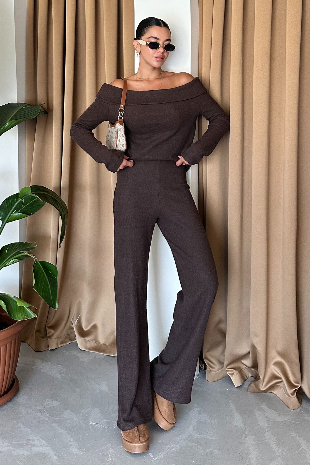Selanik Kumaş Madonna Yaka Alt Üst Pantolonlu Takım