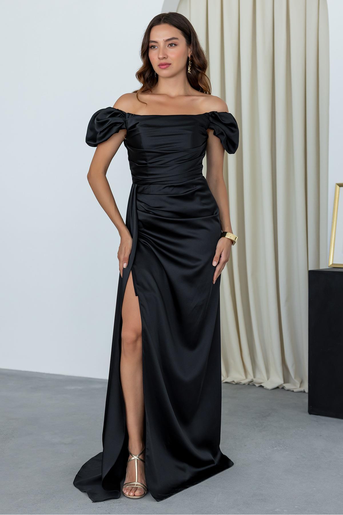 Şık ve gece ortamları için ideal bir seçim olan bu elbise, zarif görünümüyle göz alıcı bir etki yaratır