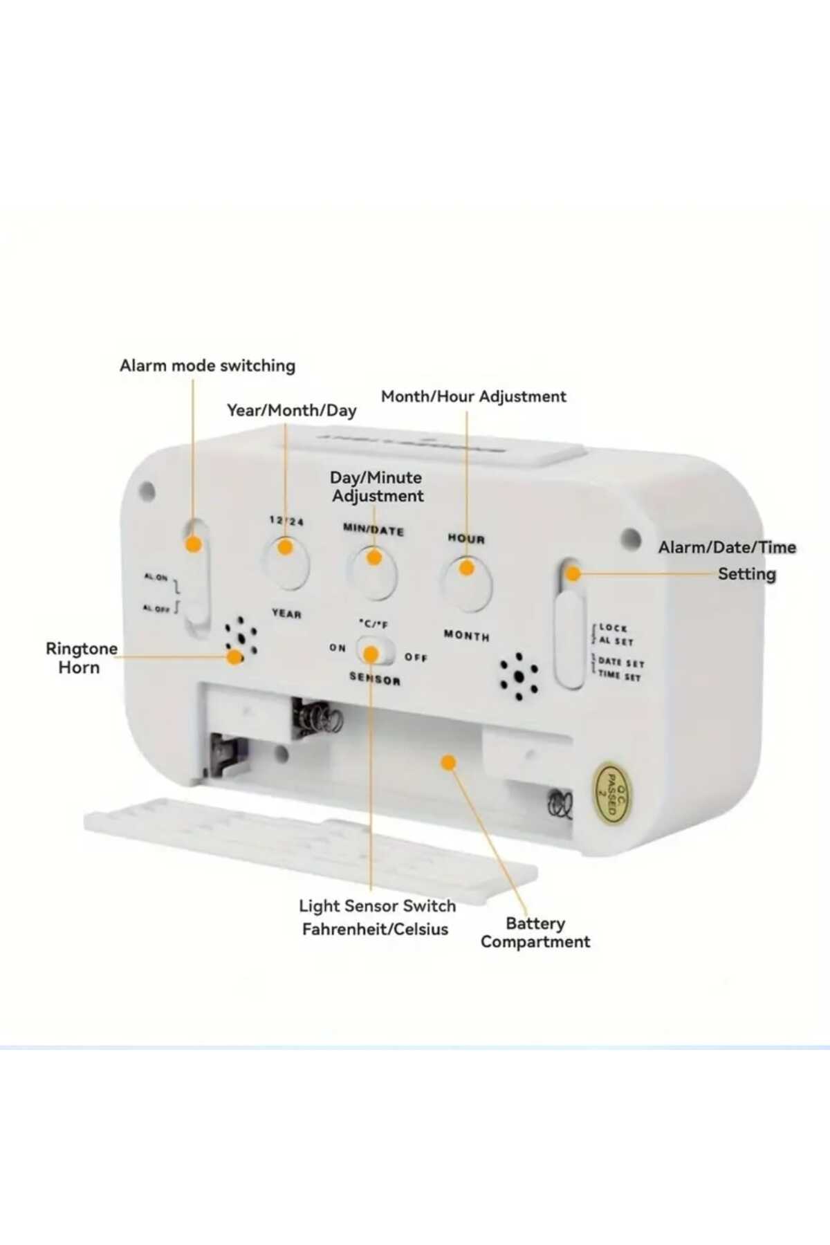 - Modern ve klasik tasarımıyla her türlü dekorasyona uyum sağlayan dijital masa saati, zamanı şık bir şekilde gösterir