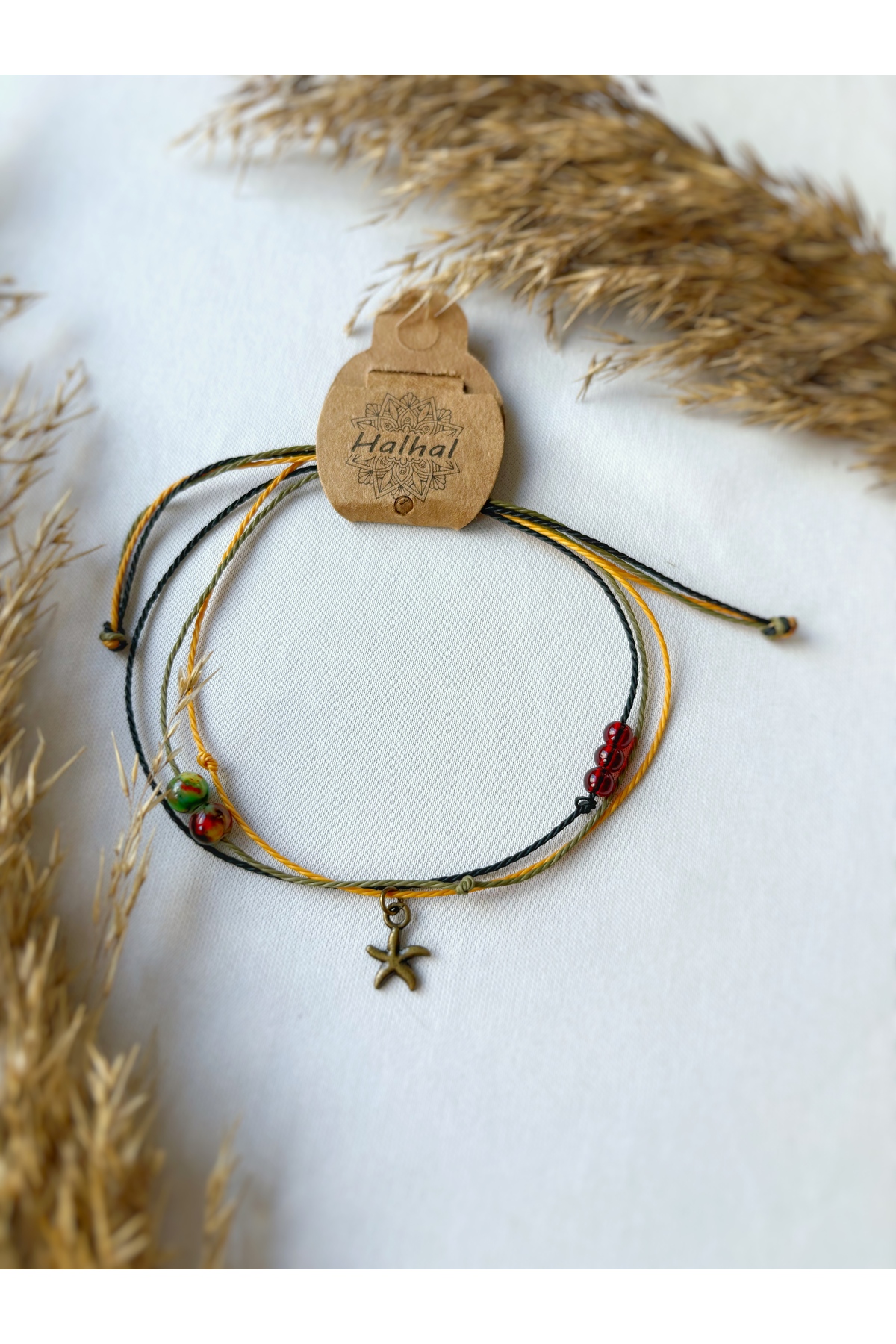Otantik deniz yıldızlı sallantılı halhal, boncuk materyali ile dikkat çeker ve şıklığınızı tamamlar