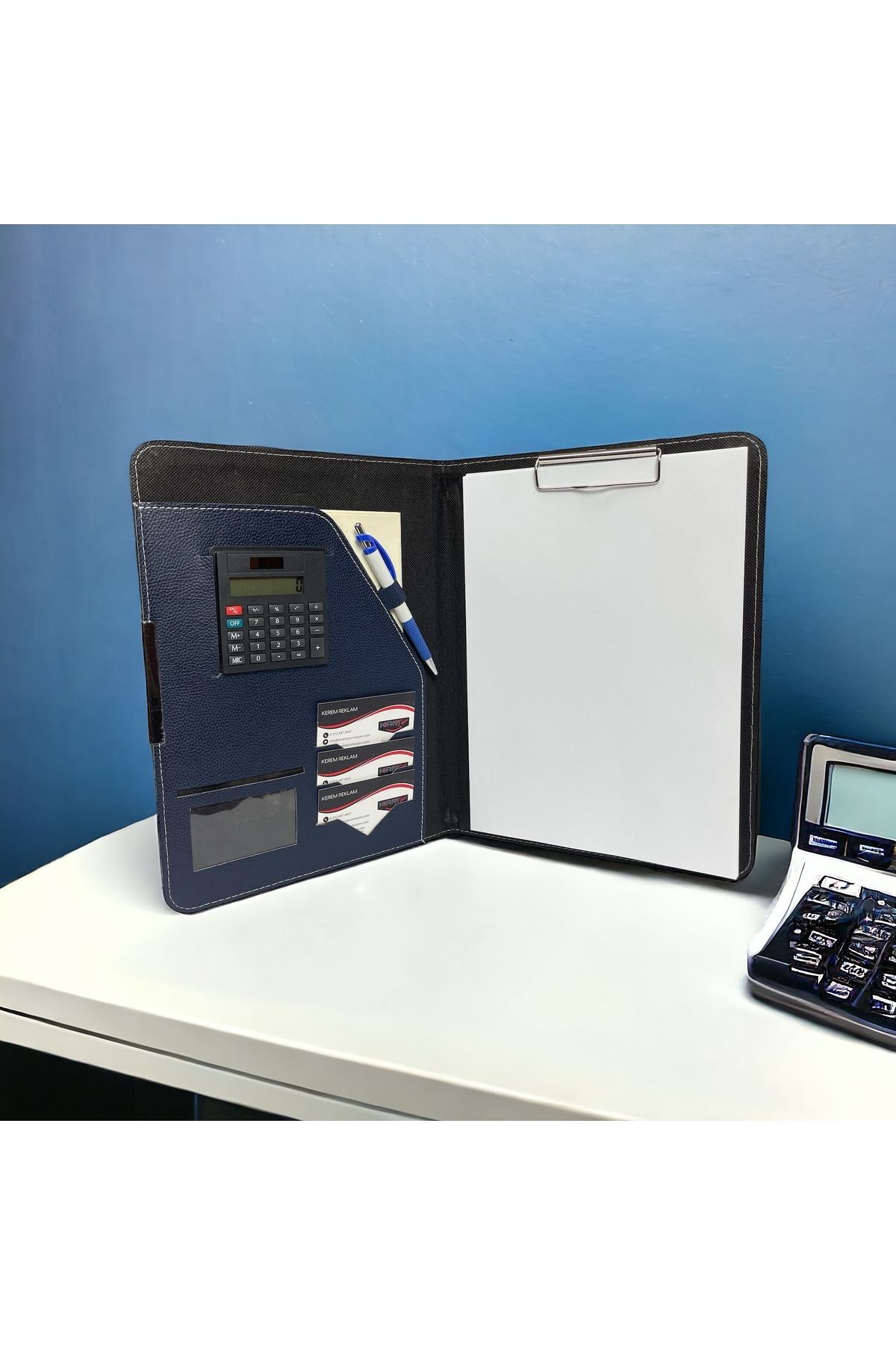 A4 Sekreterlik Termo Deri Kapaklı Hesap Makinalı -kartlık Bölmeli - Kişiye Özel Isimli -Yeni Renkler