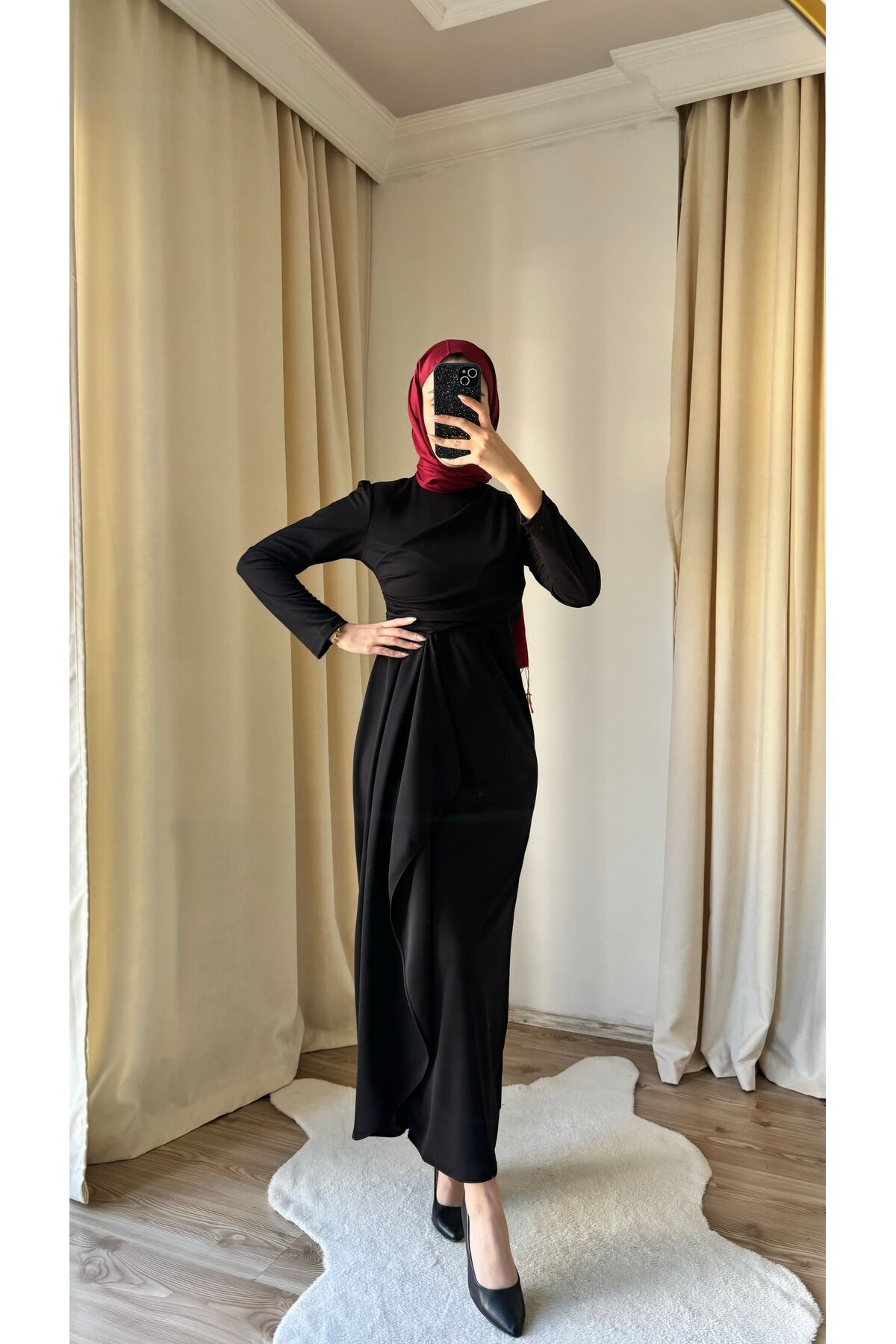 Gündüzden geceye her ortamda rahatlıkla tercih edilebilen, şık ve zarif tasarımıyla dikkat çeken tesettür elbise