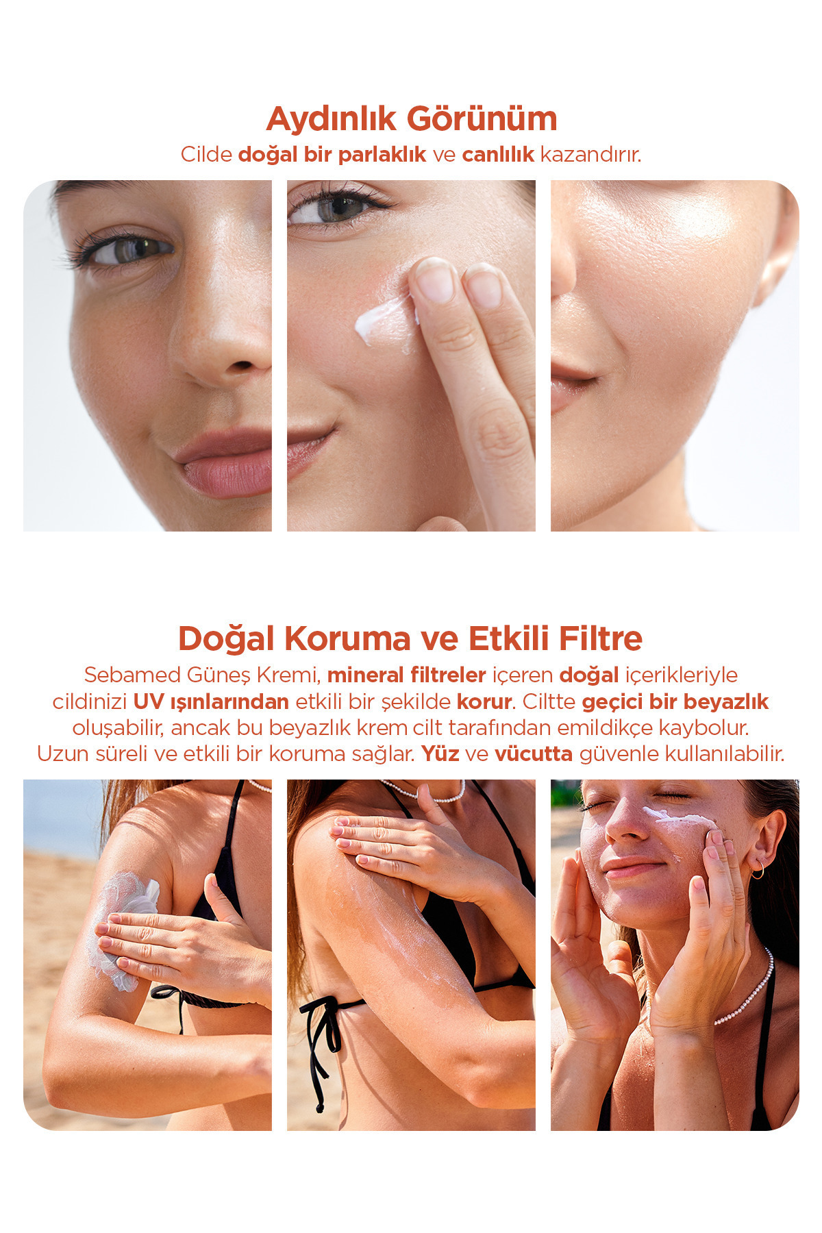 - Yüksek etkili UVA ve UVB filtre sistemi, E vitamini ile birlikte cildinizi güneşin zararlı ışınlarından ve tahrişten koruyarak, hassas ciltlerin bile güneşin keyfini çıkarmasına olanak tanır.