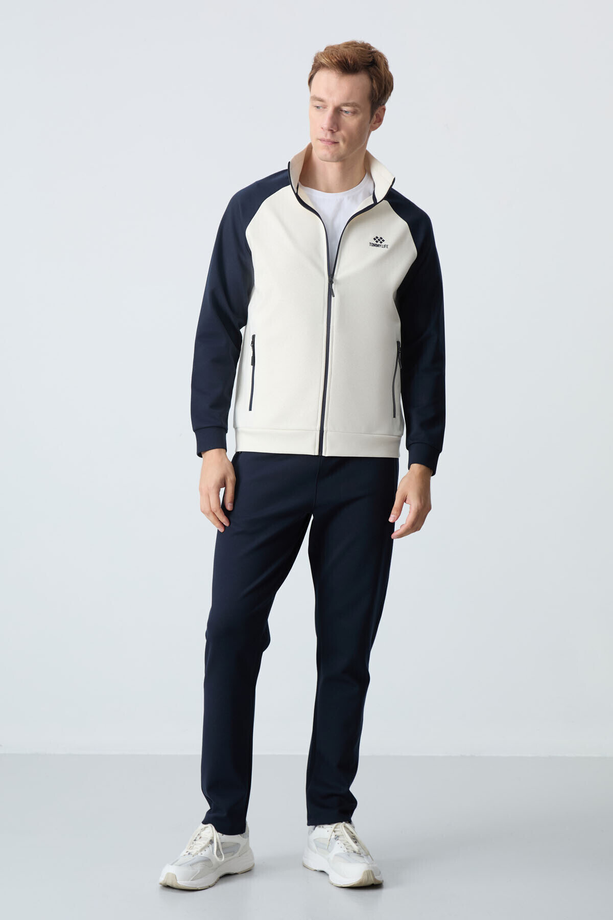 Çağla siyah Dik Yaka Çift Renk Rahat Form Klasik Paça Erkek Eşofman Takımı - 85113