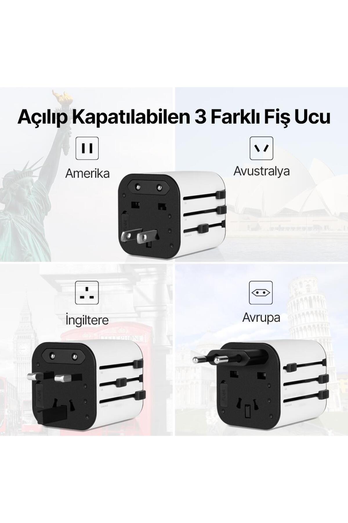 Ttec Şarj Akım Korumalı 10A/250V Amerikan İngiltere Avrupa Tipi Priz Dönüştürücü Seyahat Adaptörü100-2SA02 Evrensel dönüştürücü adaptör Avrupa, İngiltere ve Amerika/Avusturalya uyumlu açılıp kapatılabilen 3 farklı fiş ucu Hafif ve kompakt tasarım Güvenli kullanım için akım korumalı Bu adaptör voltaj dönüştürücü değildir ve yalnızca 100V ila 250V giriş voltajlarında çalışan cihazlar ile uyumludur