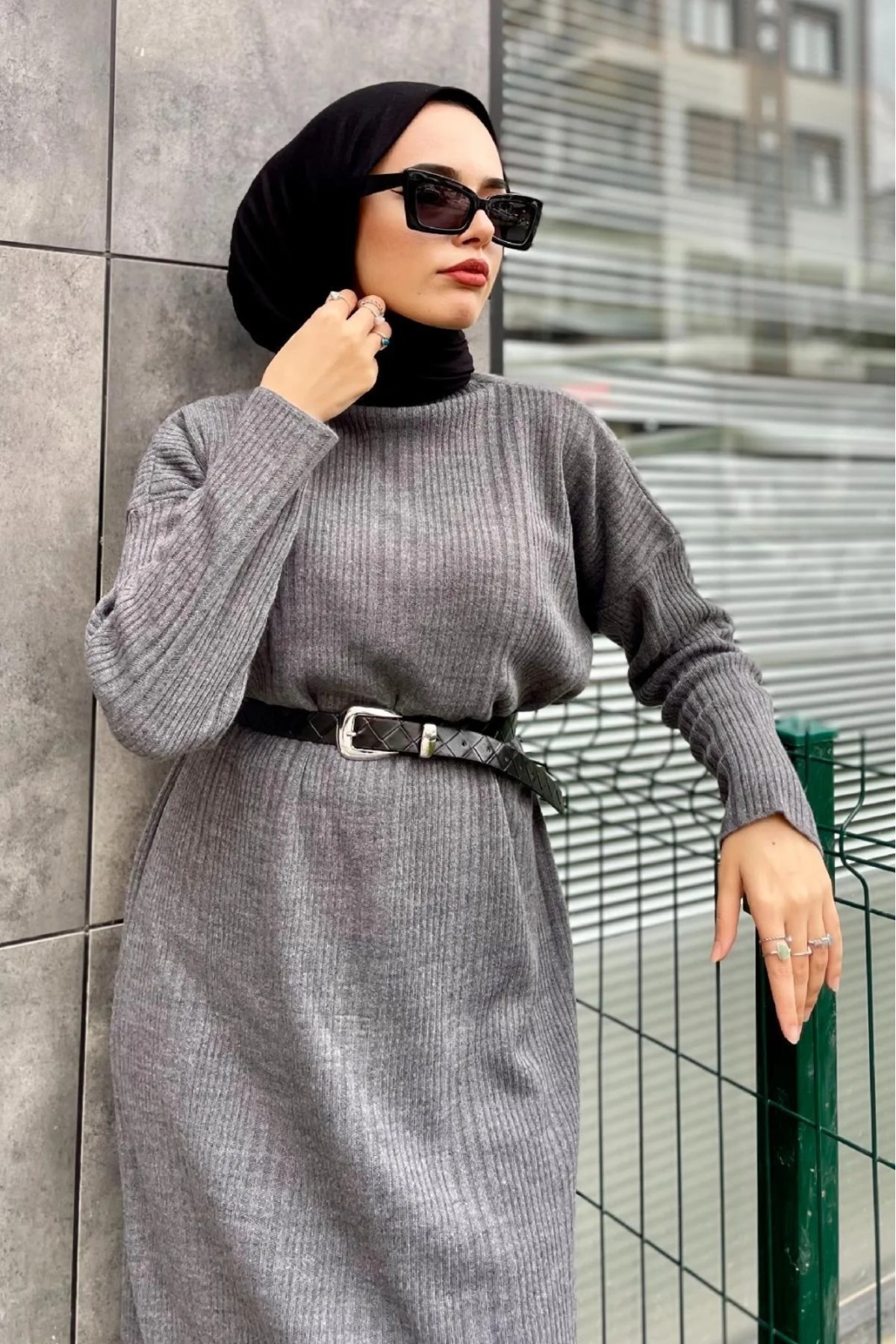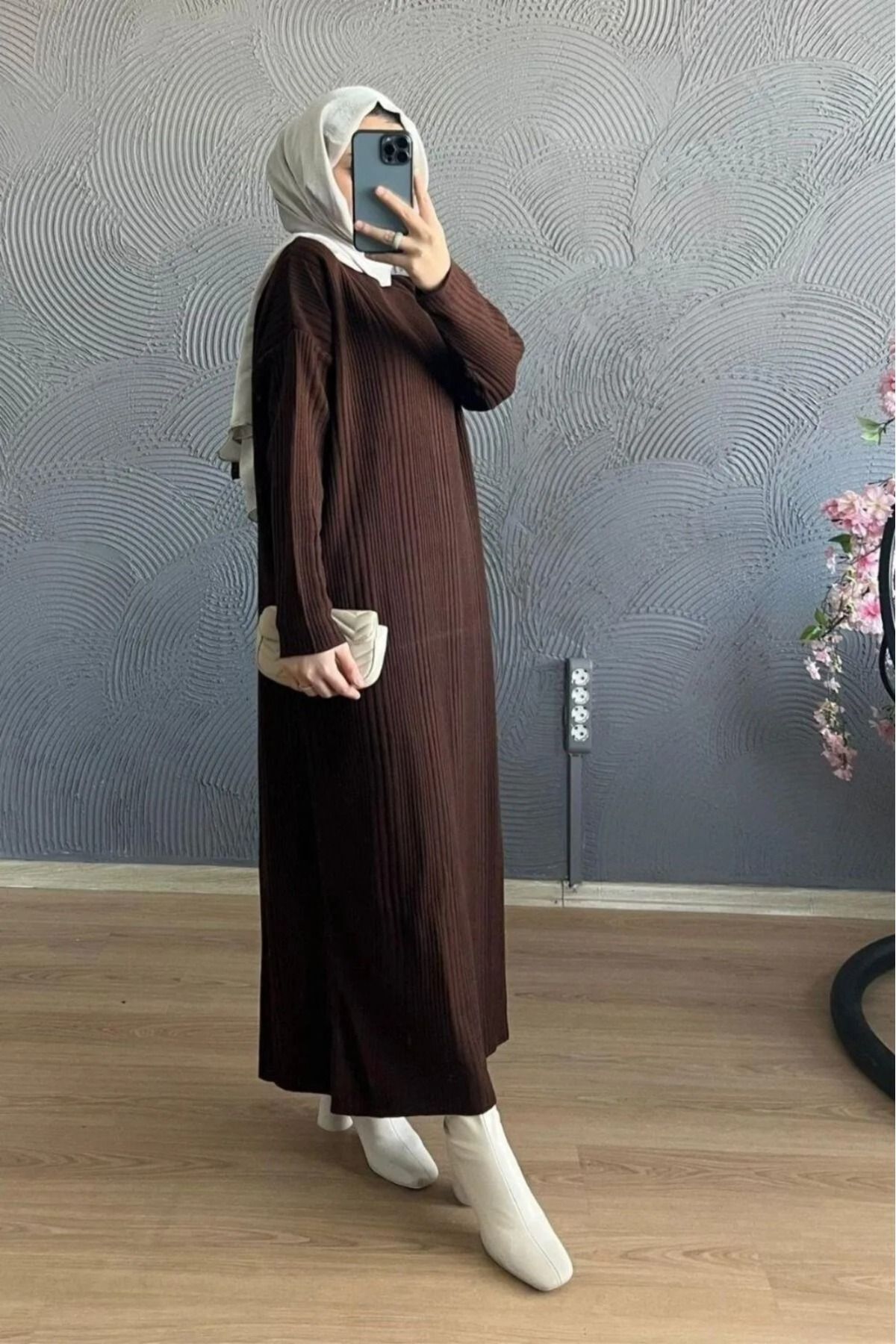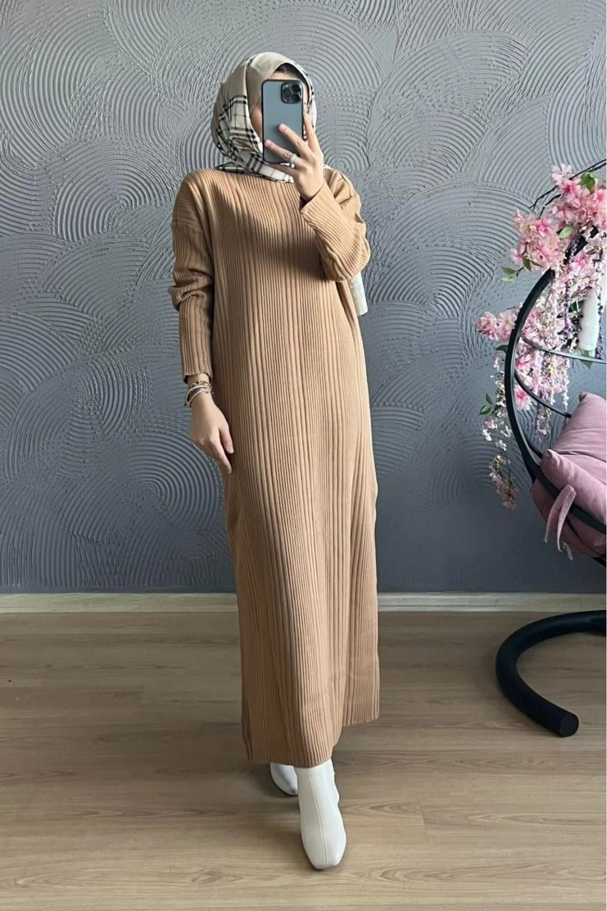 Young koleksiyonuna özel tasarlanmış, her yaş grubuna hitap eden düz kesim fitilli triko elbise, günlük kullanım için idealdir