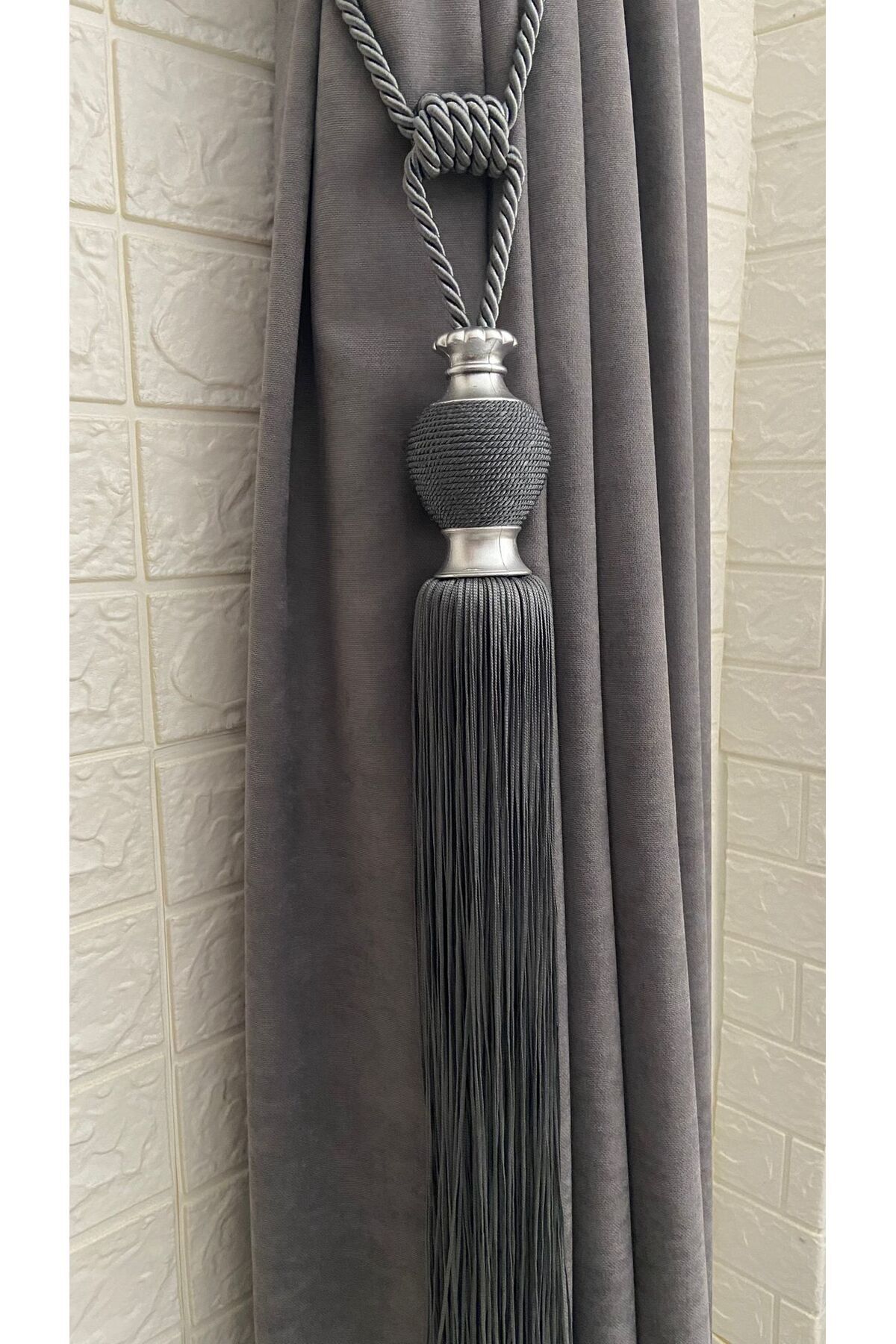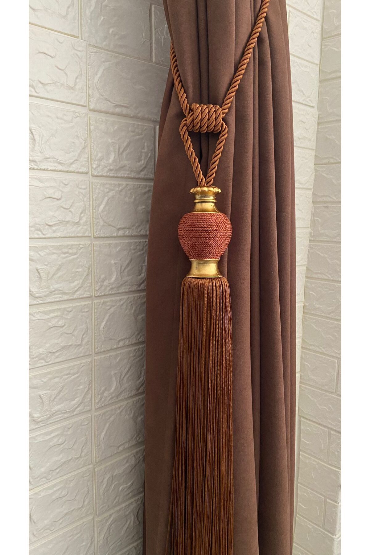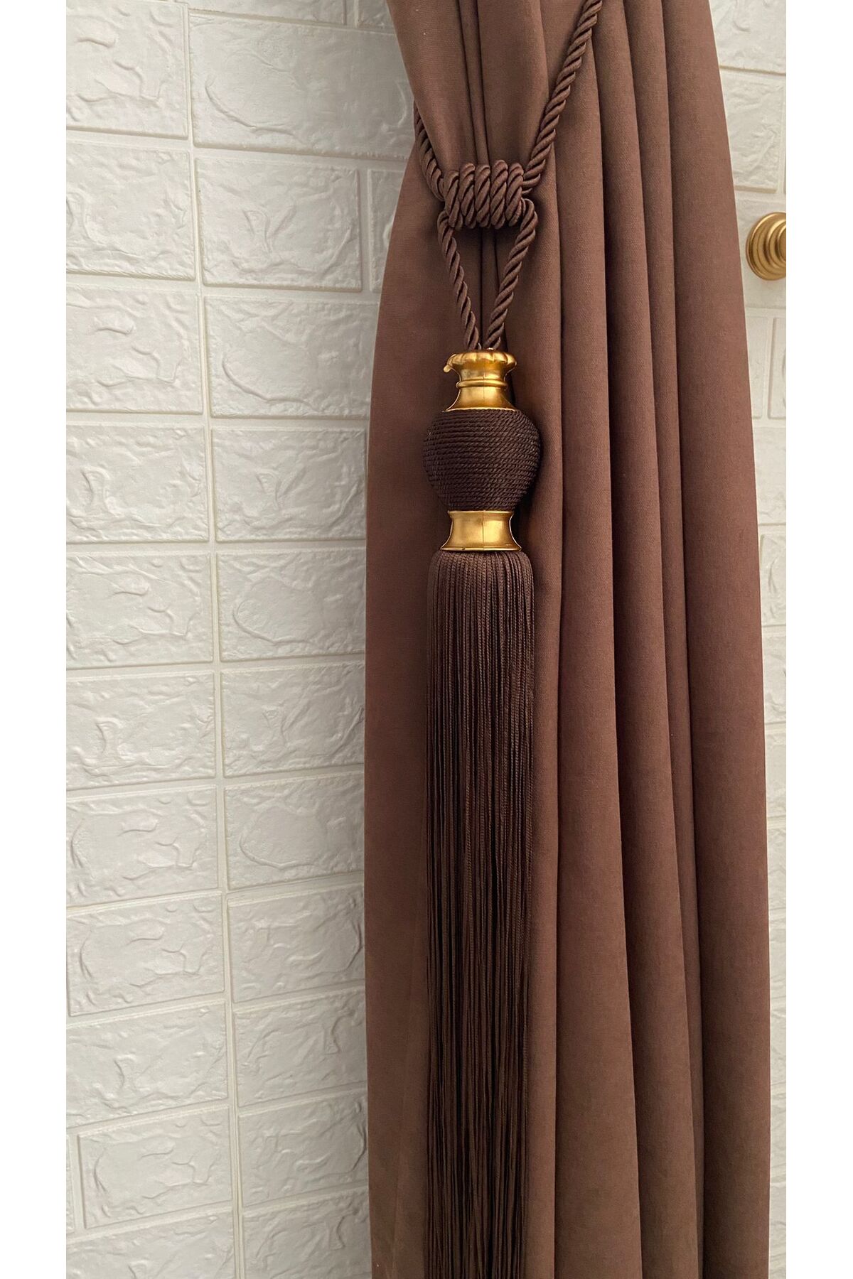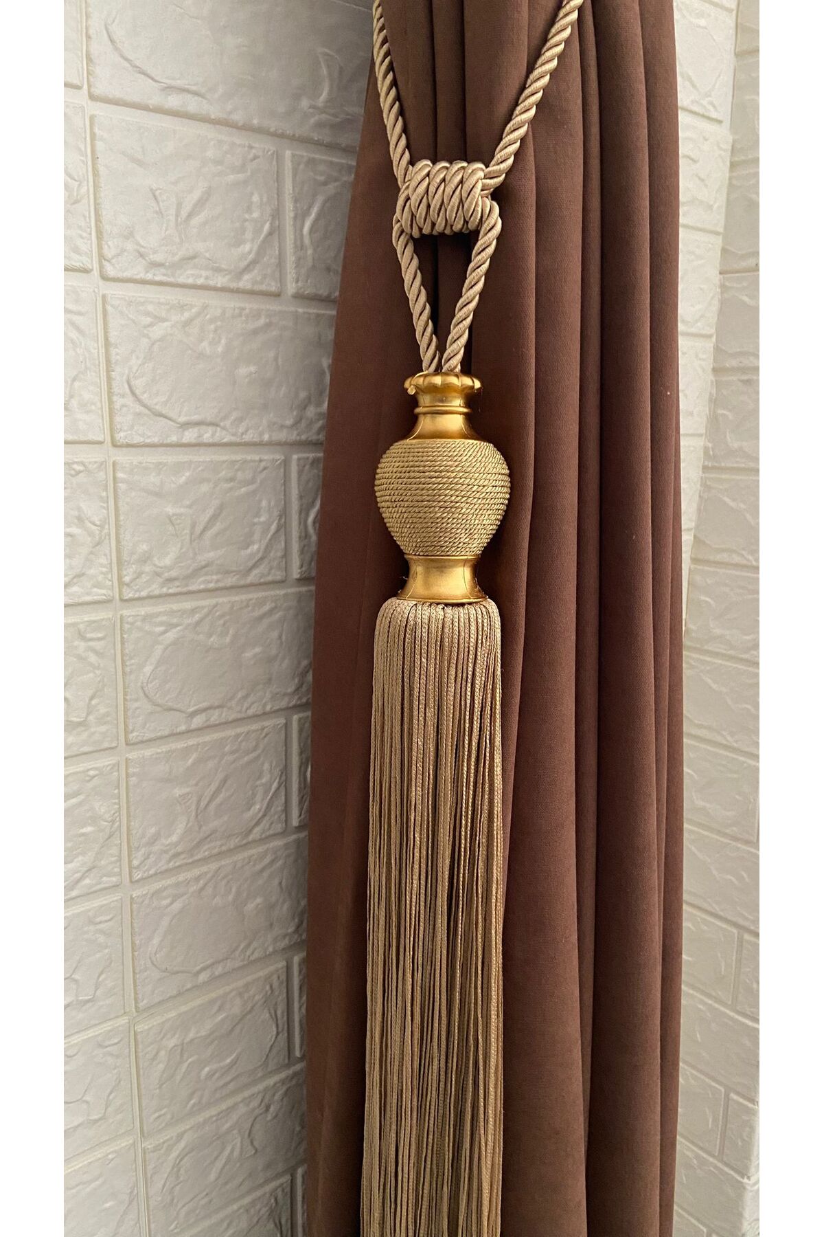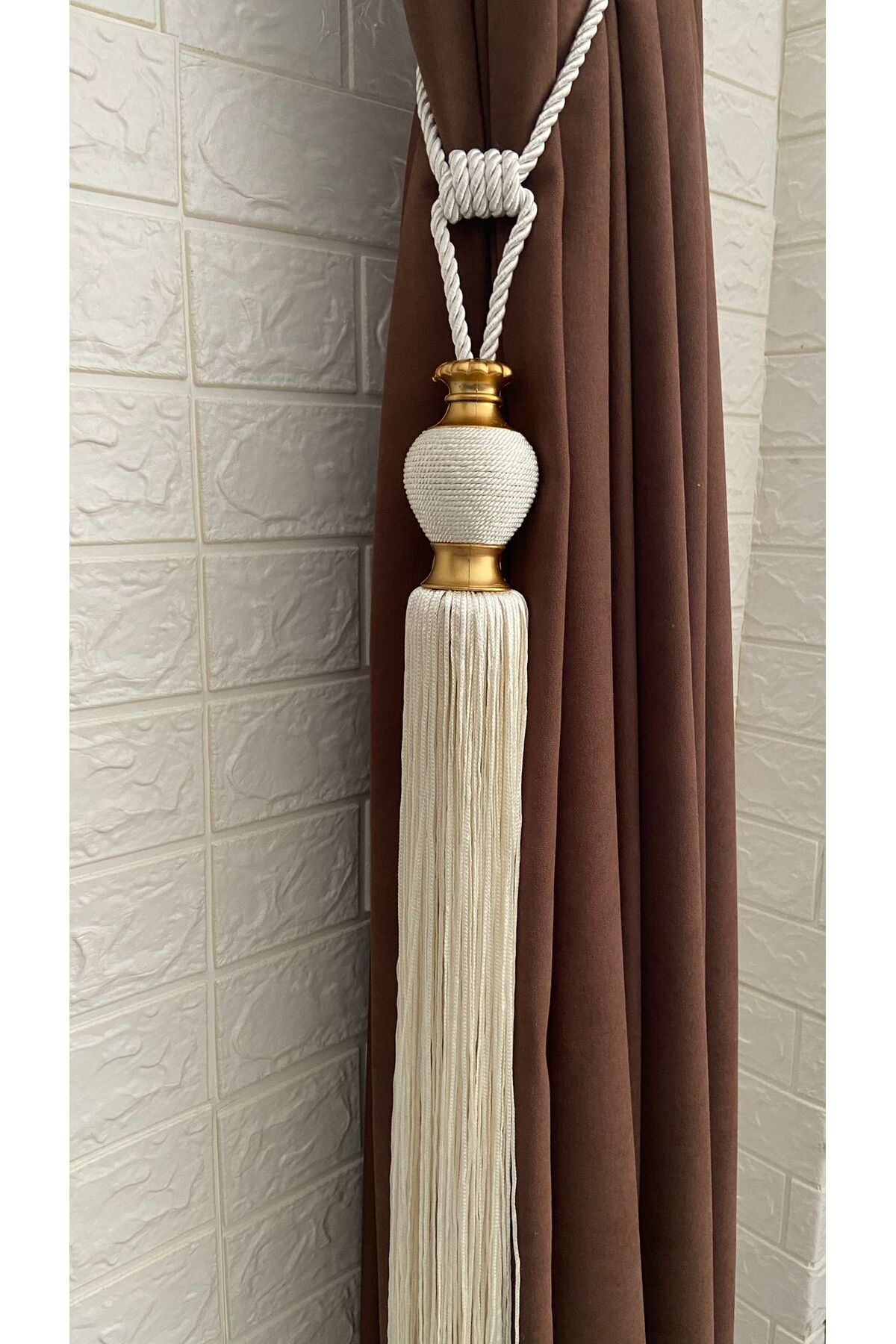 Perde aksesuarı olarak tasarlanmış, kornişe kolayca takılabilen ve şık bir görünüm sunan püsküllü bracol
