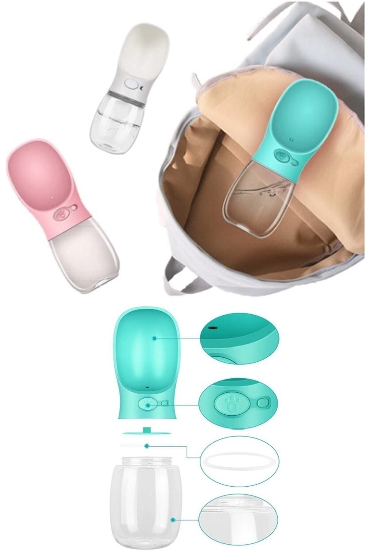 1 Adet Kedi Köpek Suluğu Taşınabilir Seyahat Su Şişesi Kaseli Emniyetli Sızdırmaz Kutulu 350ml Turkuaz