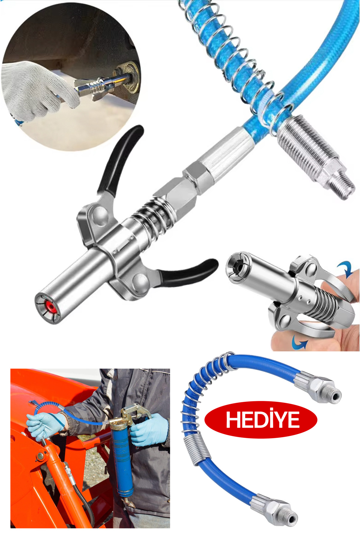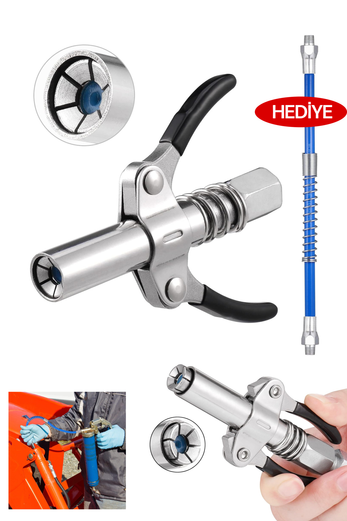 Çift Mandallı Gres Pompa Ucu Gres Yağ Pompası 500 Cc Büyük Boy Demir Hortum Gres Takım