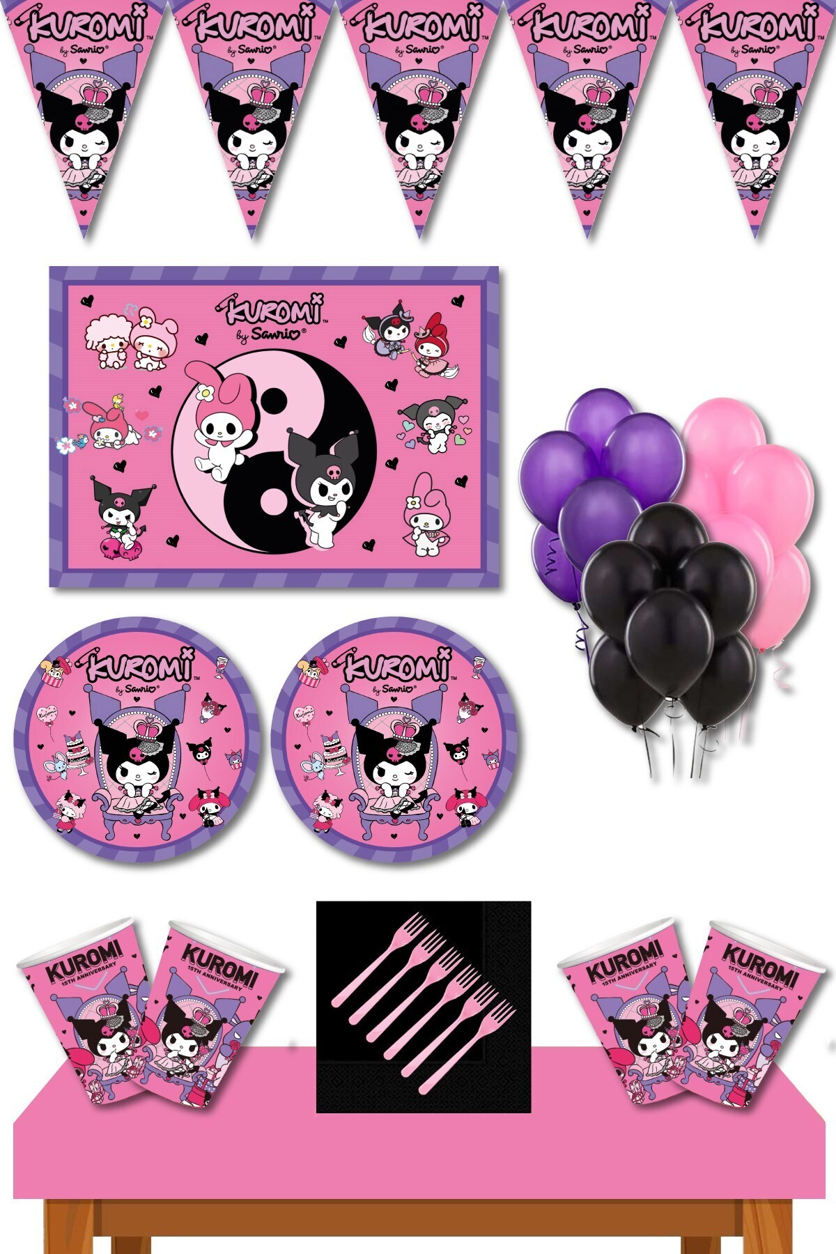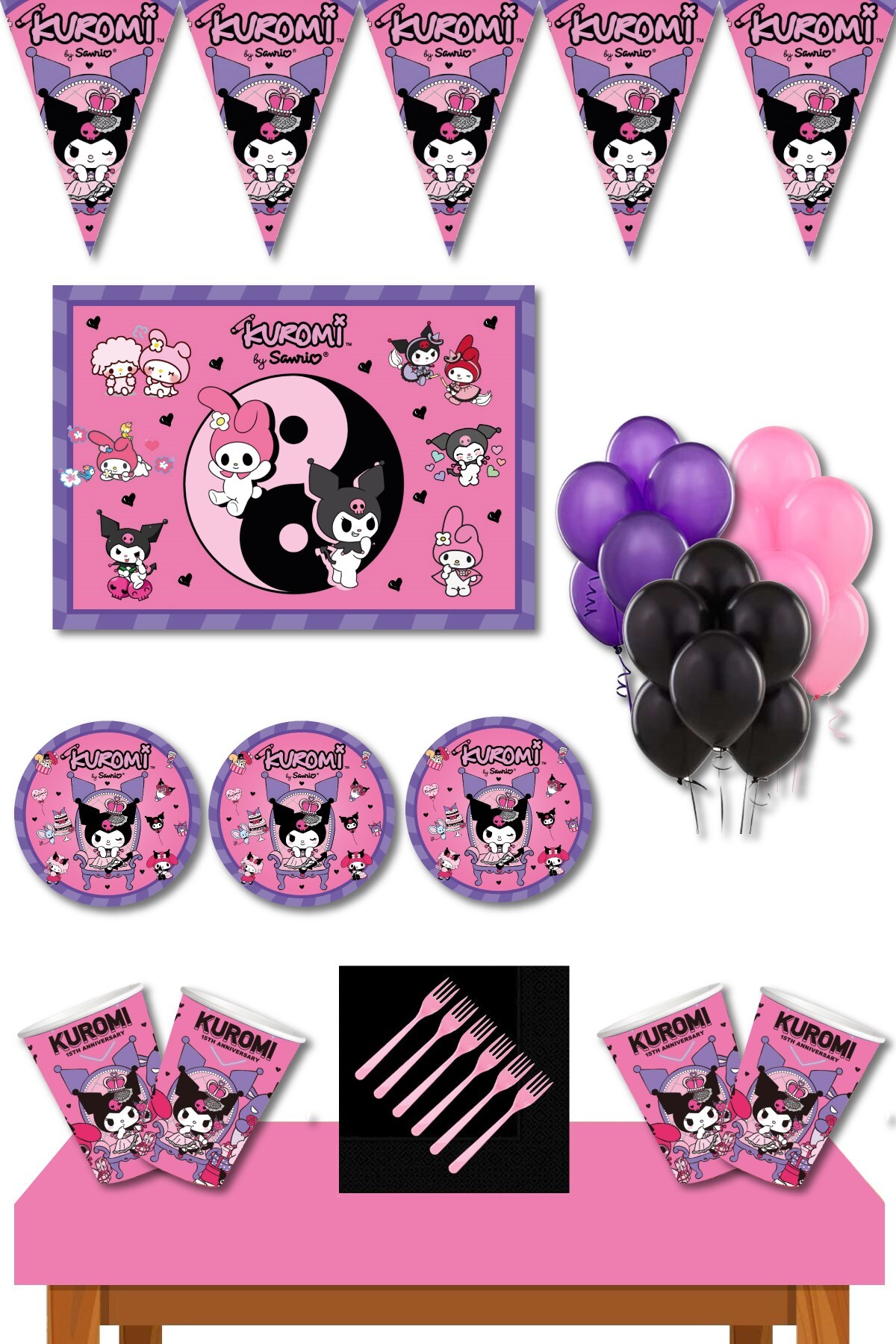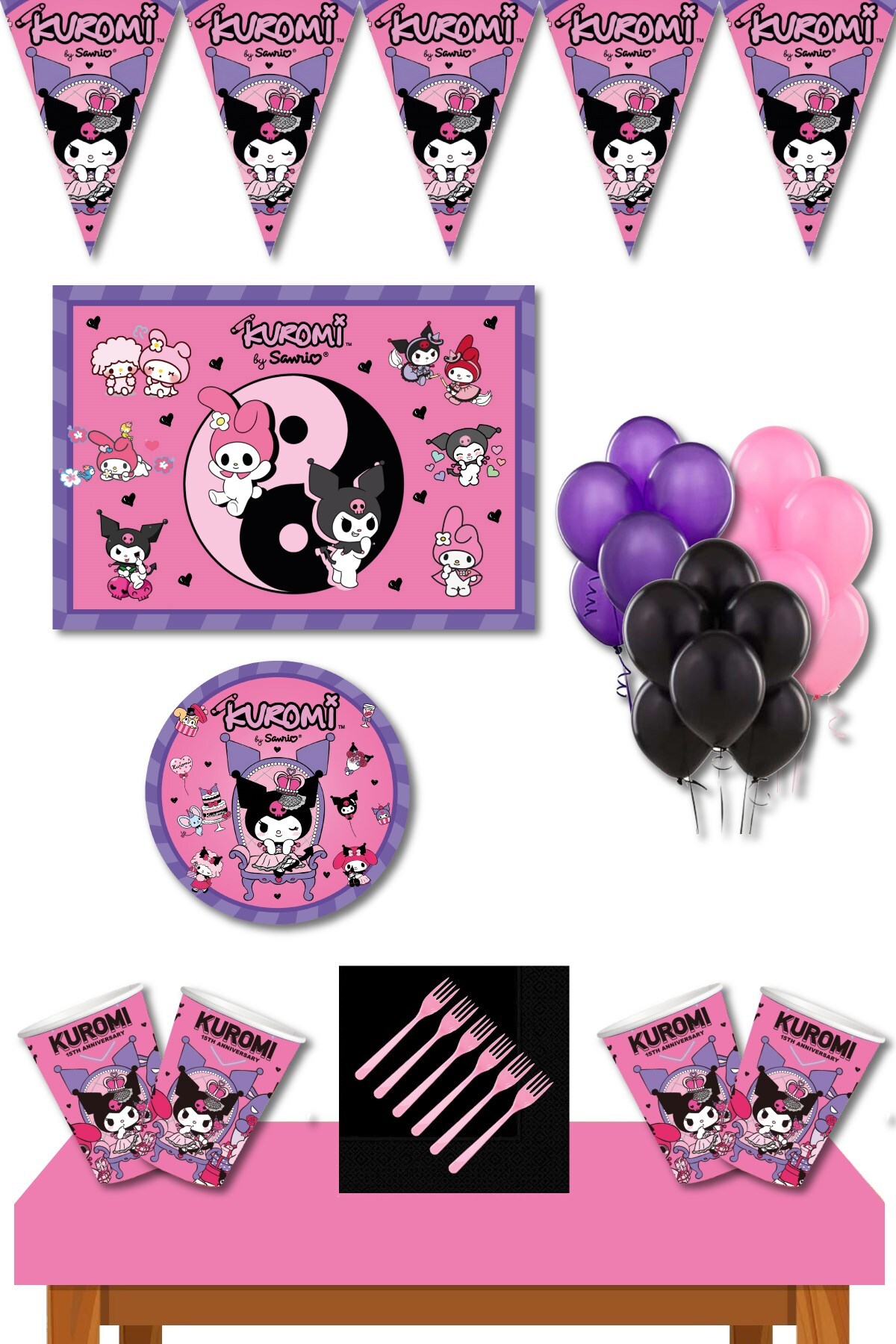 Kuromi Parti Seti 16 Kişilik Afişli - Kuromi Doğum Günü Süsleri Seti