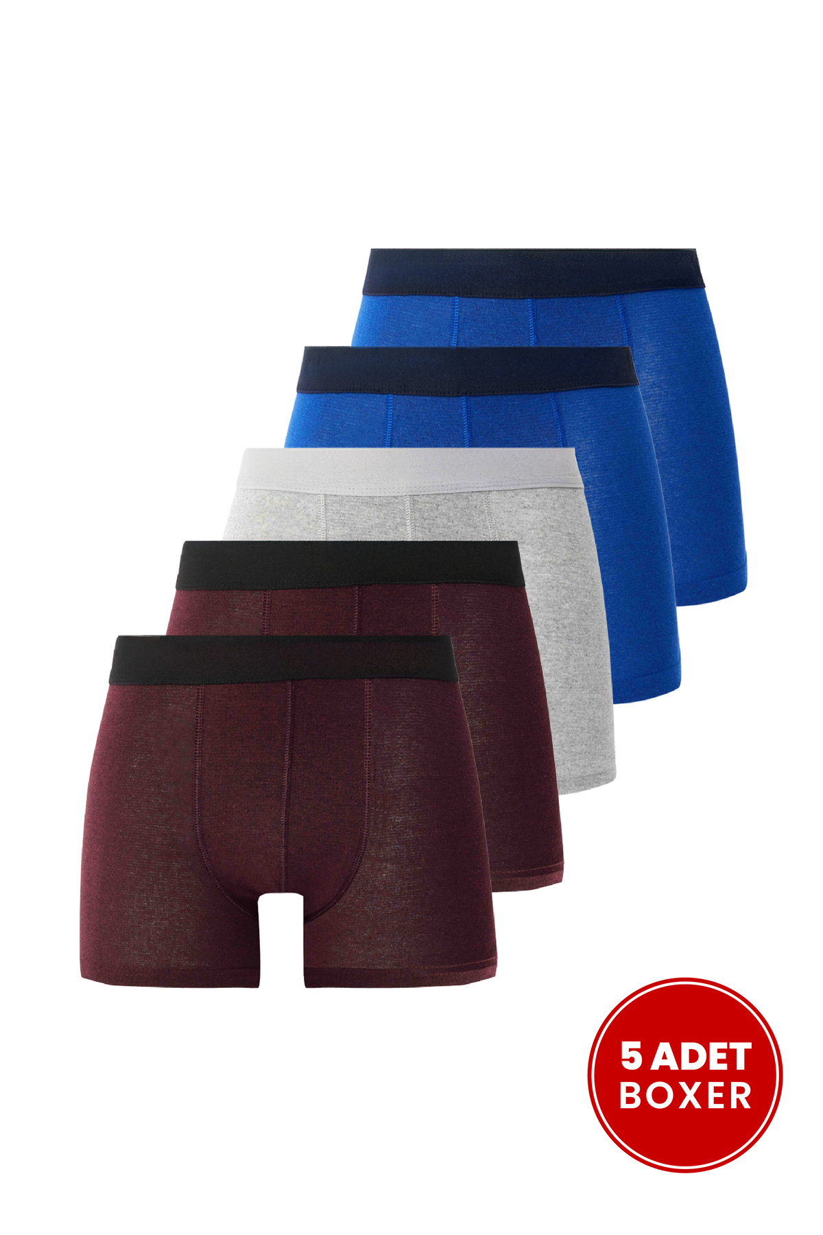 Erkek 5'li Pamuklu Likralı Esnek Kumaş Siyah Boxer