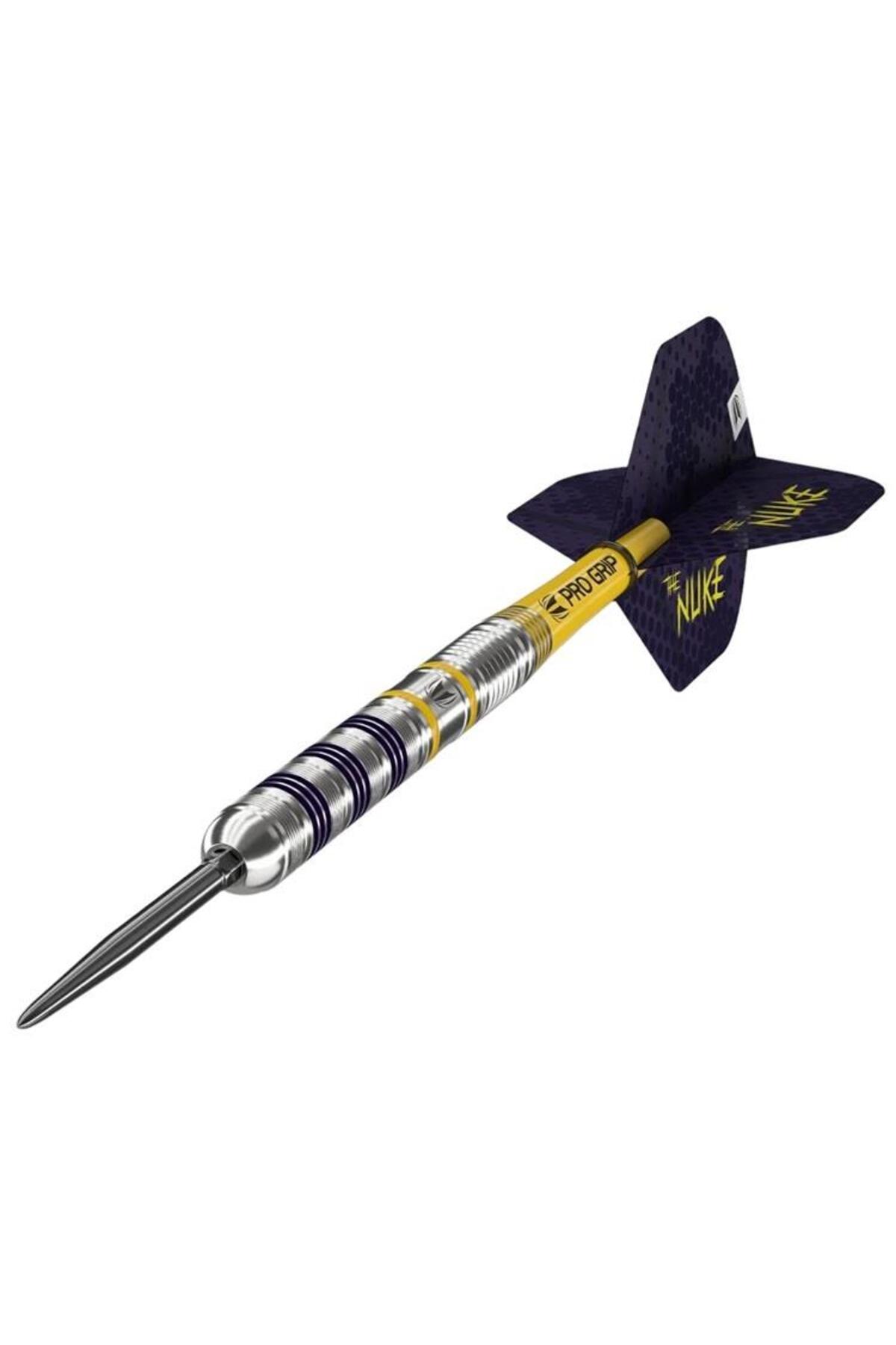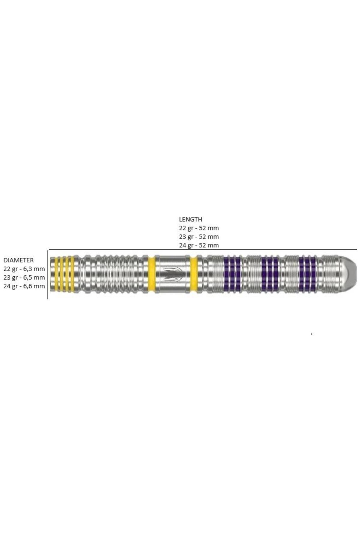Dart seti, 52 mm uzunluğunda % 90 Tungsten düz gövdeye ve gelişmiş parmak kavraması için radyal yivlere sahiptir.