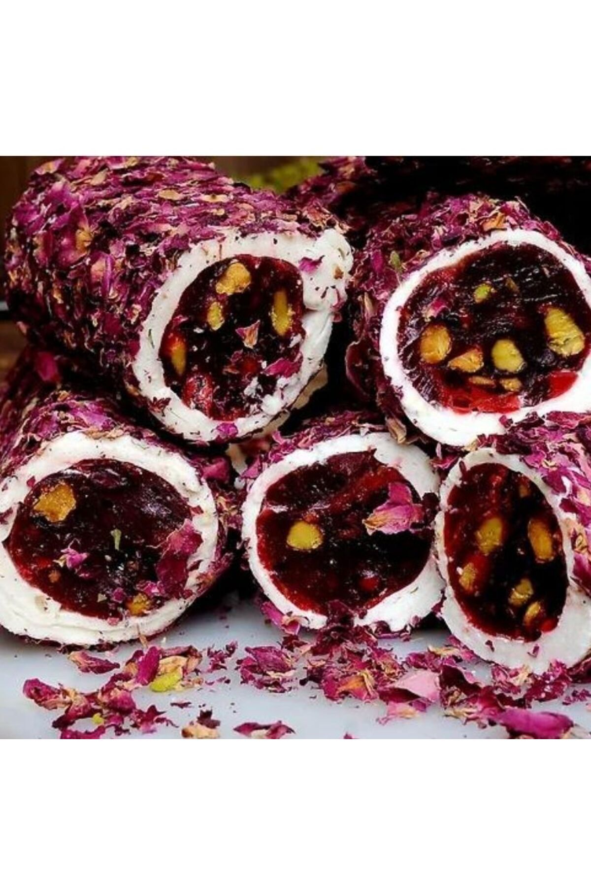 Gül yaprağı aroması ile zenginleştirilmiş, doğal tatlılık sunan fıstıklı lokum.