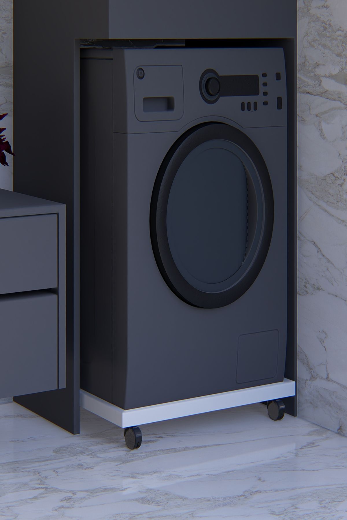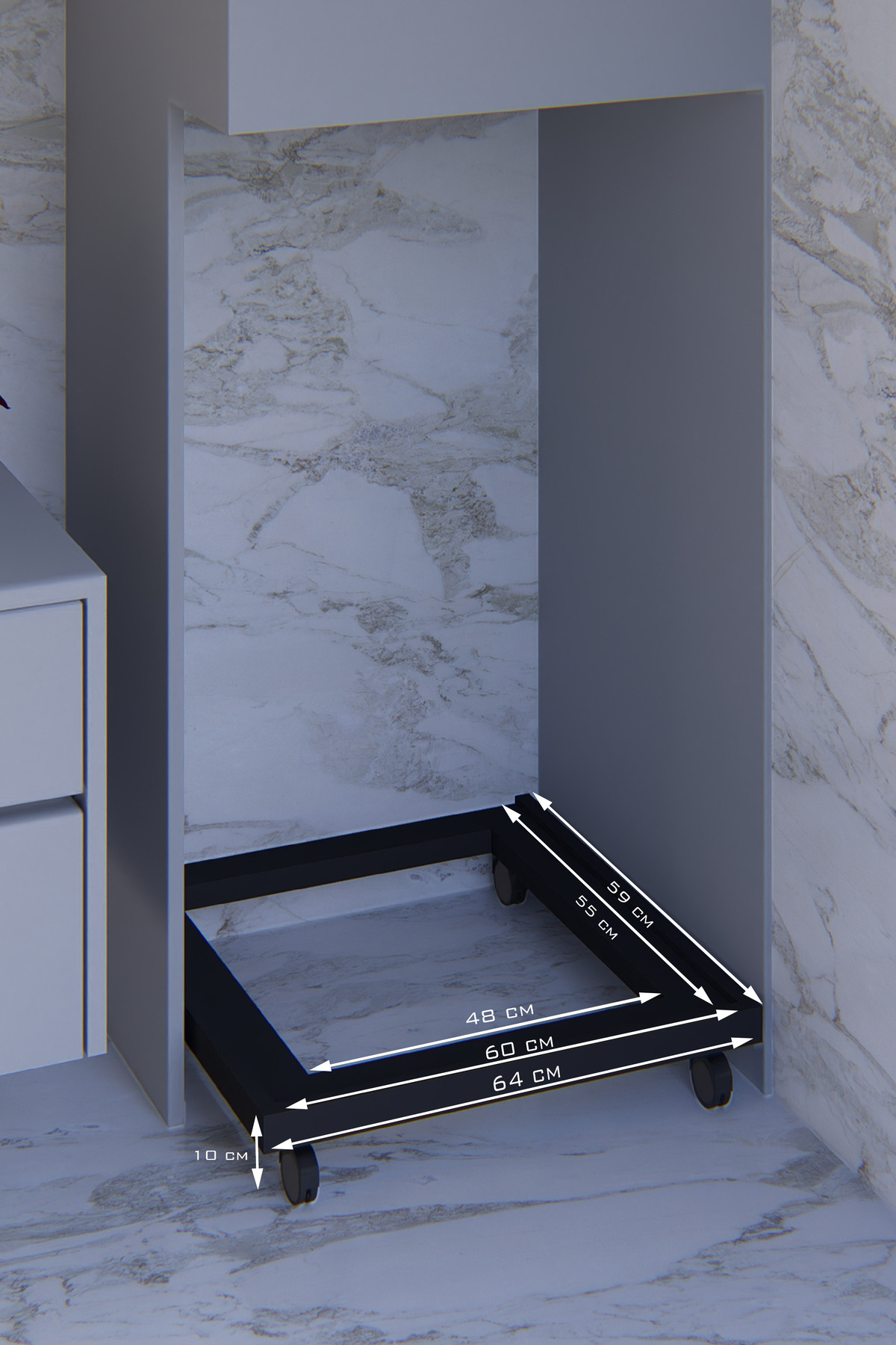 İç Ölçü: 60 x 55 cm Çamaşır Bulaşık Makinesi Buzdolabı Kuzine Soba Altlığı 150 Kg Taşıma Kapasitelidir.