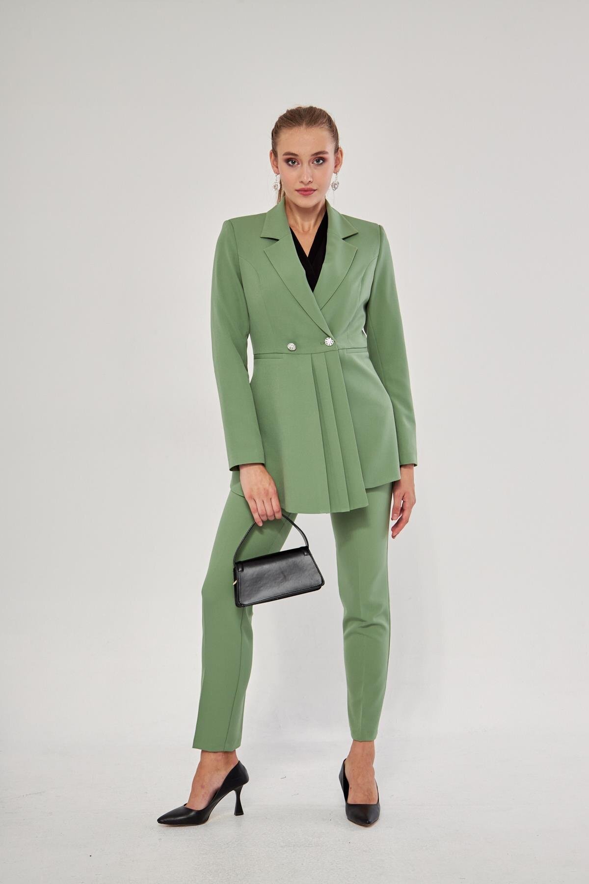 - Uzun kollu tasarımı ile mevsim geçişlerinde ideal bir tercih olurken, ceket yaka detayı sofistike bir hava katar.