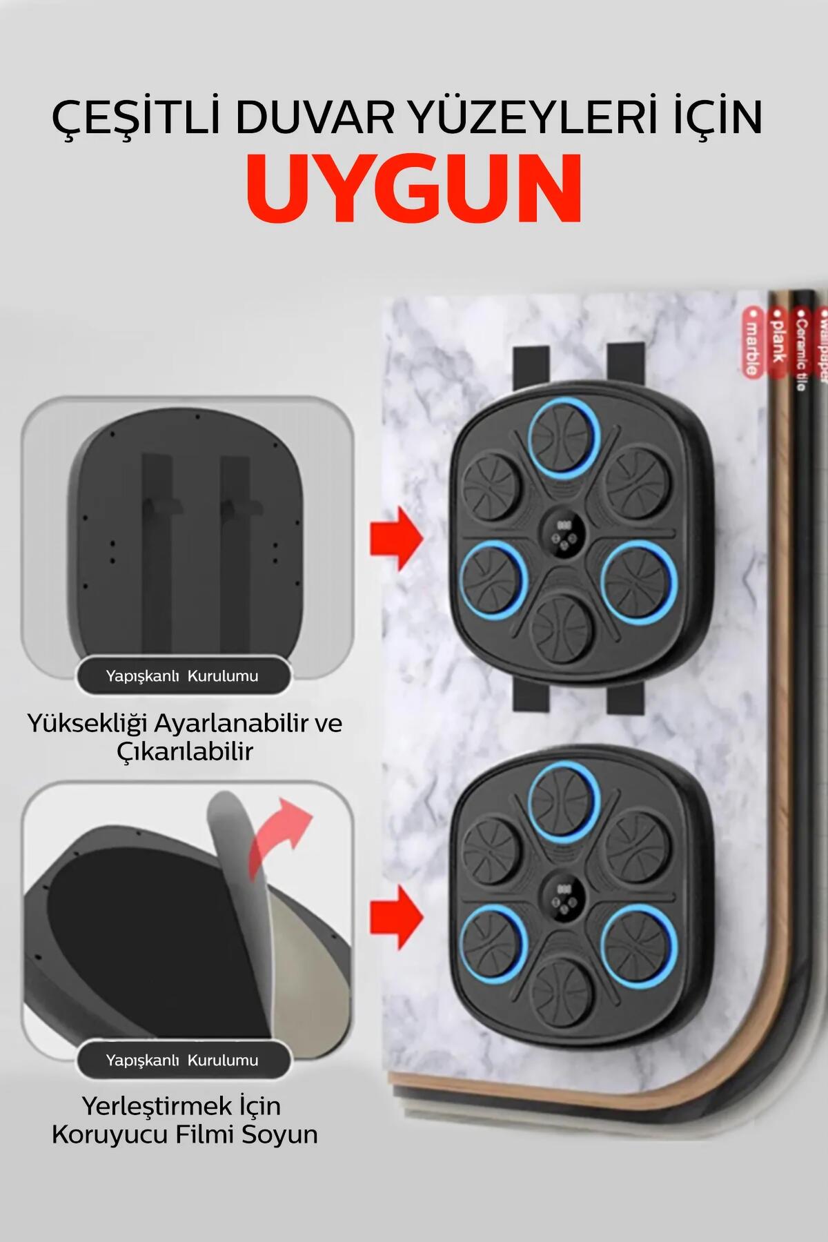 Boks Eğitim Makinesi Sayaçlı RGB Işıklı Bluetooth Müzik Çalar Box Egzersiz Elektronik Kum Torbası