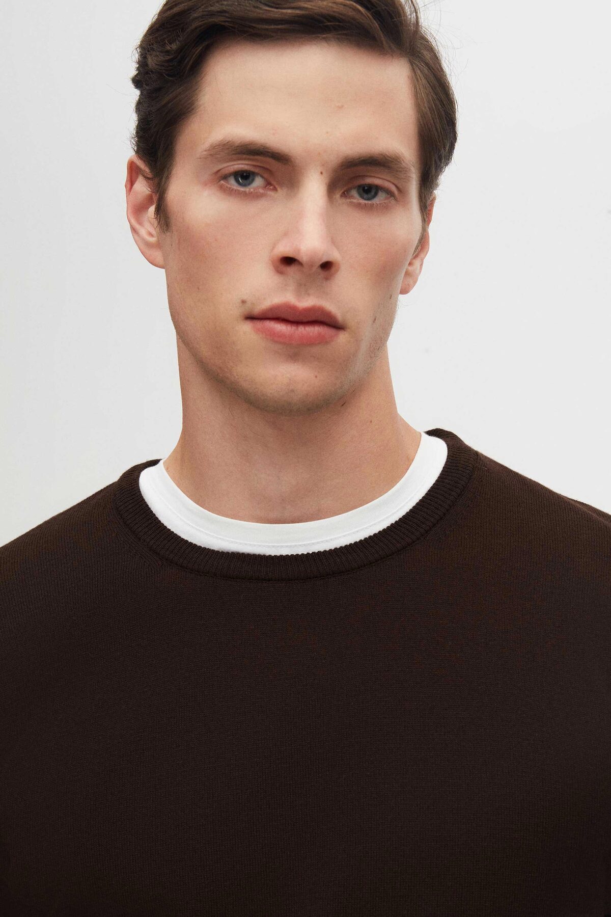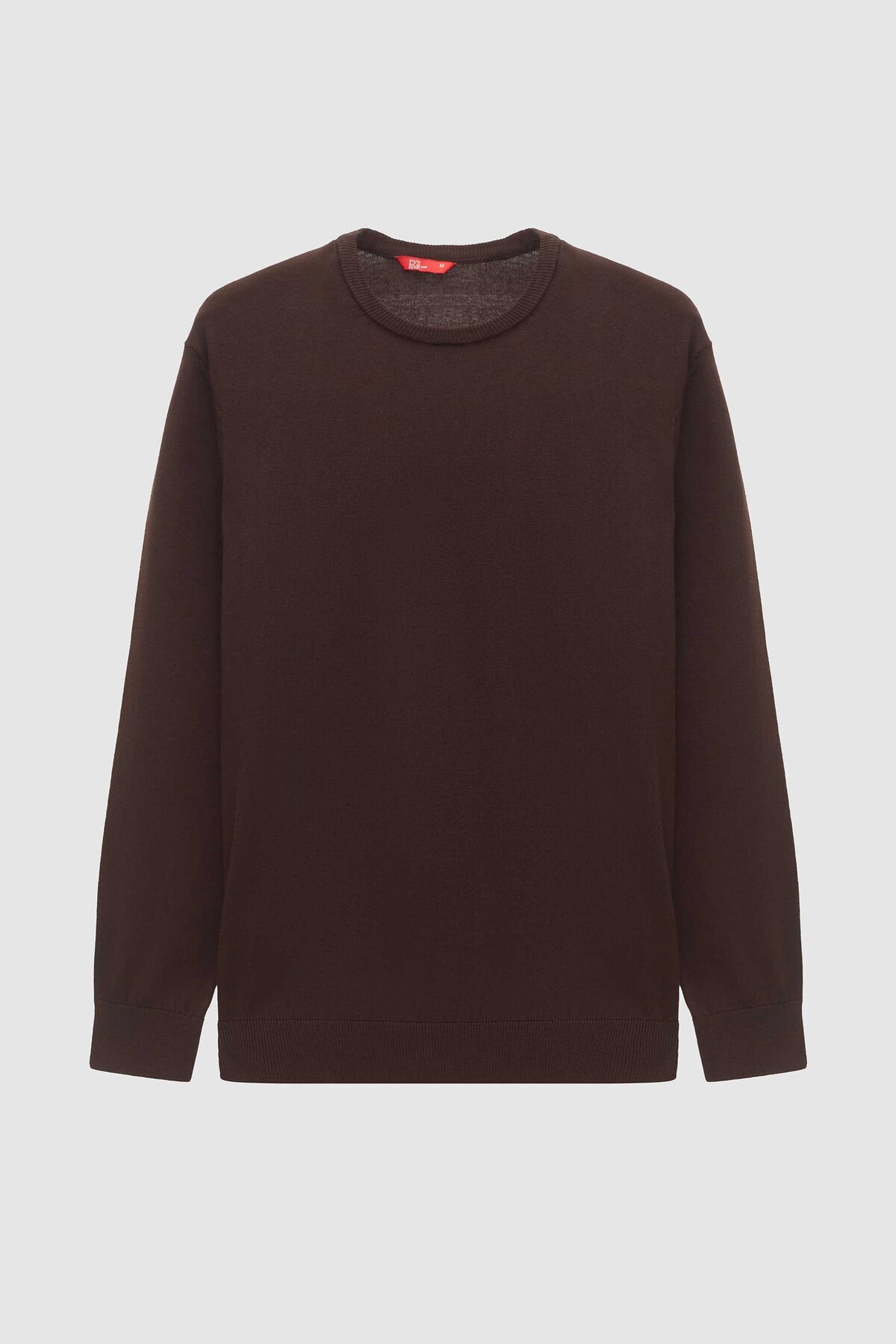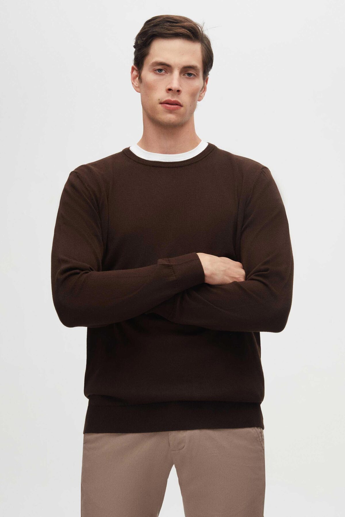 Ds Damat Regular Fit Kahverengi Tüylenme Yapmayan Bisiklet Yaka Pamuklu Triko Kazak
