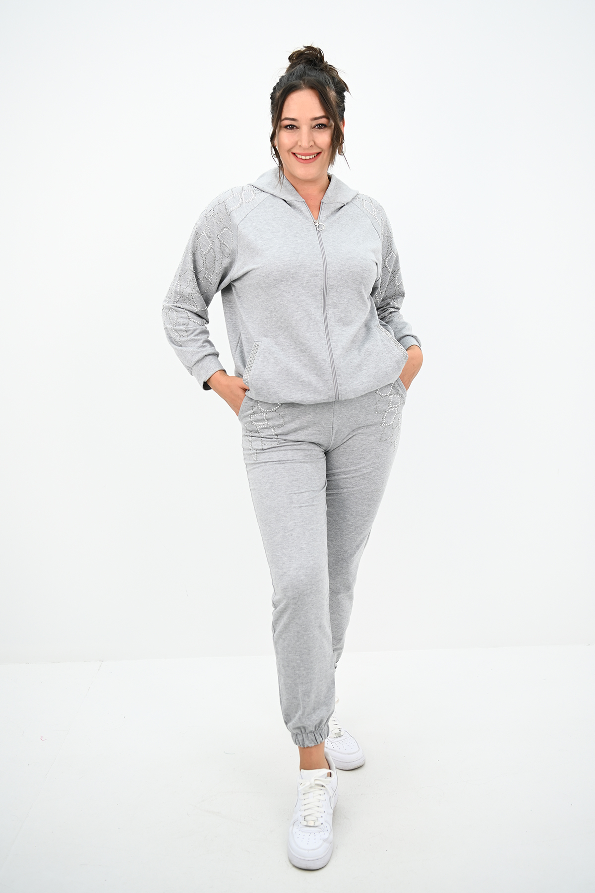 Büyük beden kapüşonlu eşofman takımı, 42-50 bedene uyumludur.