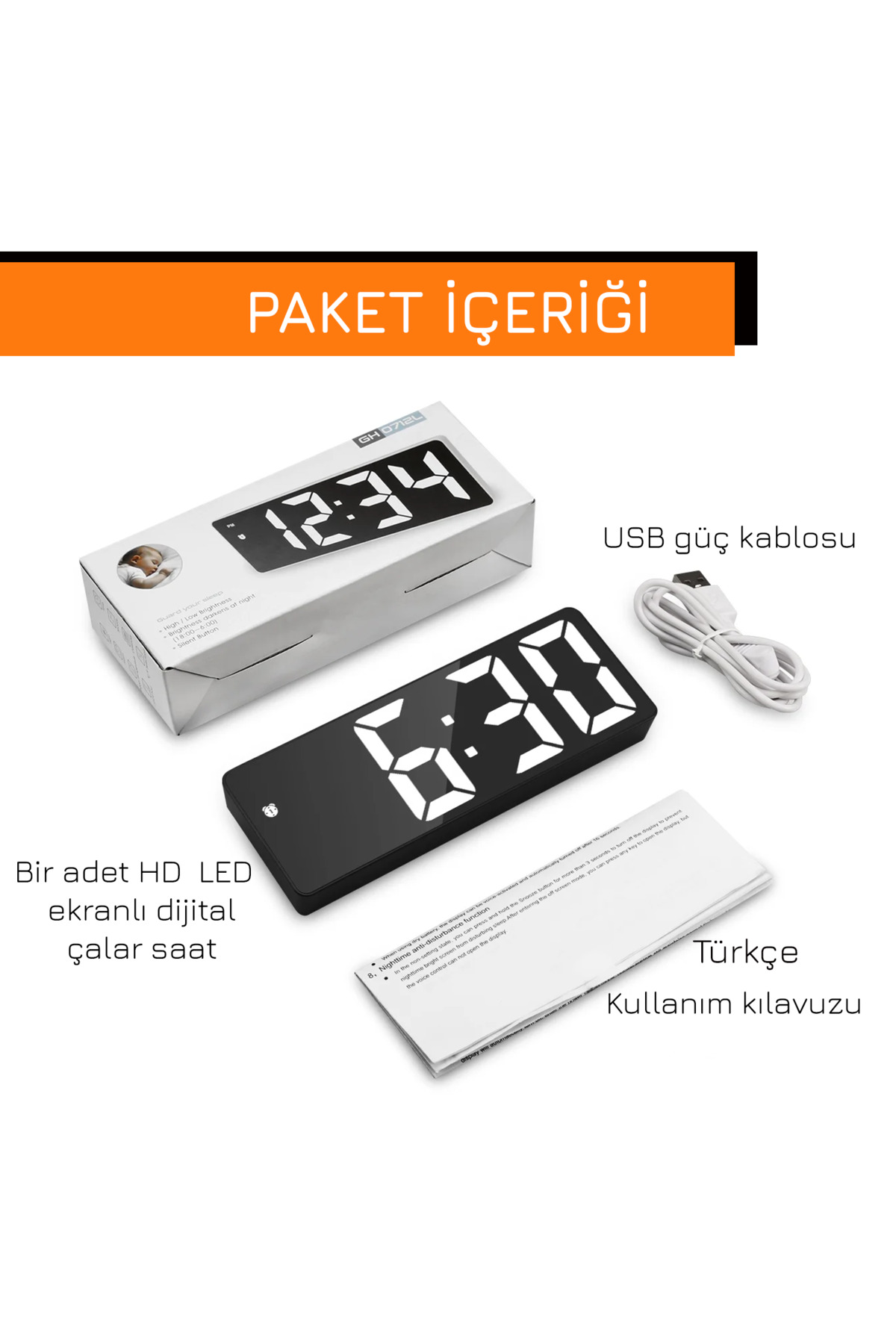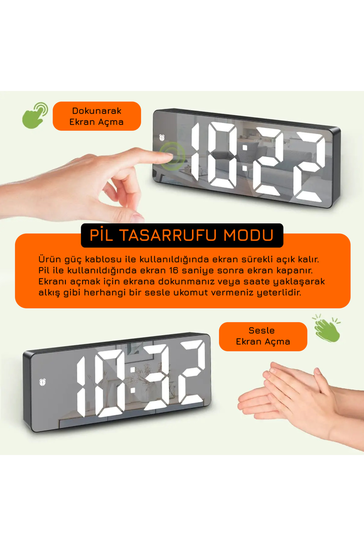 Modern tasarımı ile her türlü dekorasyona uyum sağlayan dijital masa saati, ev veya ofis ortamınıza şıklık katar