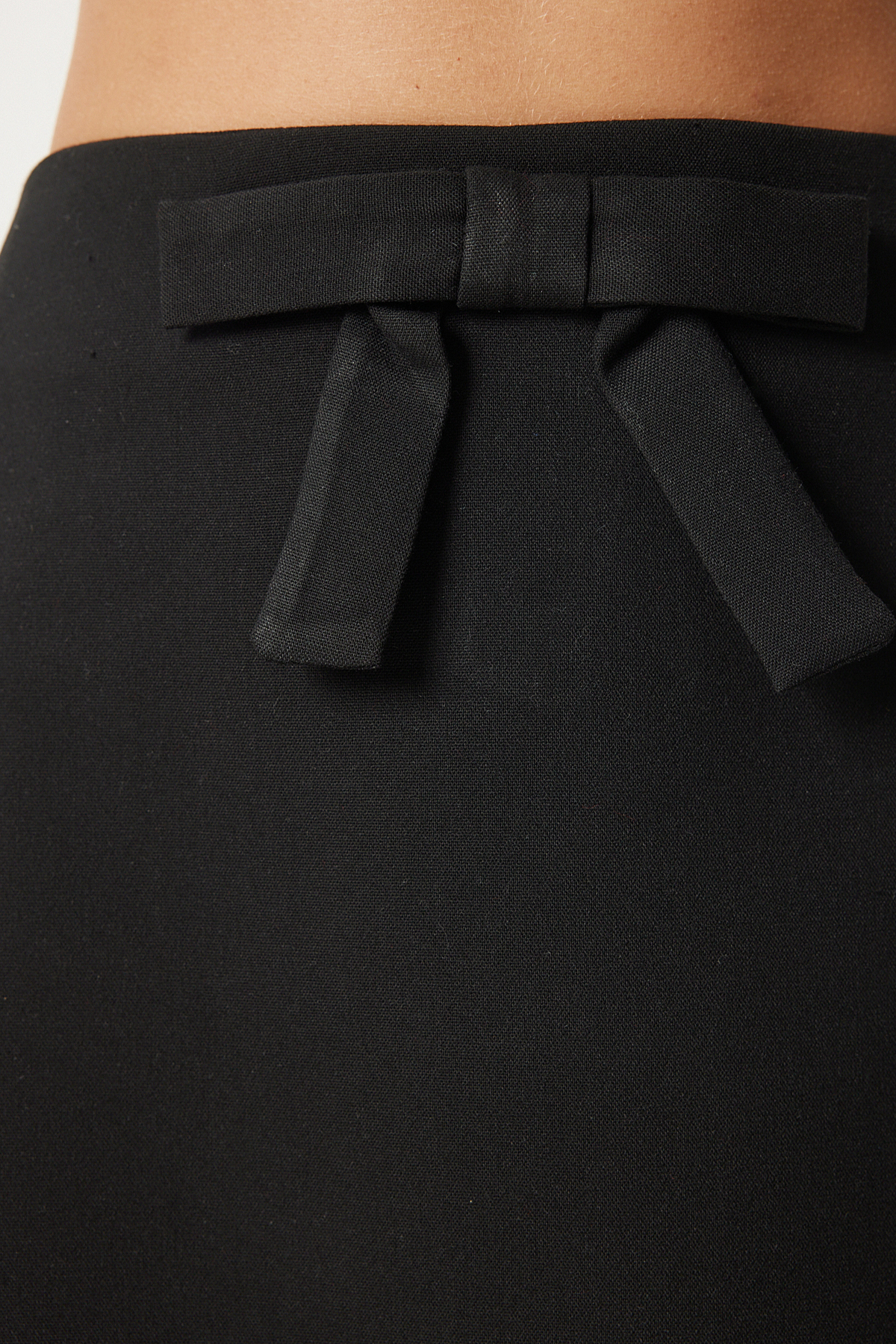 Yandan fermuar kapamalı, astarsız iç göstermeyen, fiyonk detaylı dokuma etek.