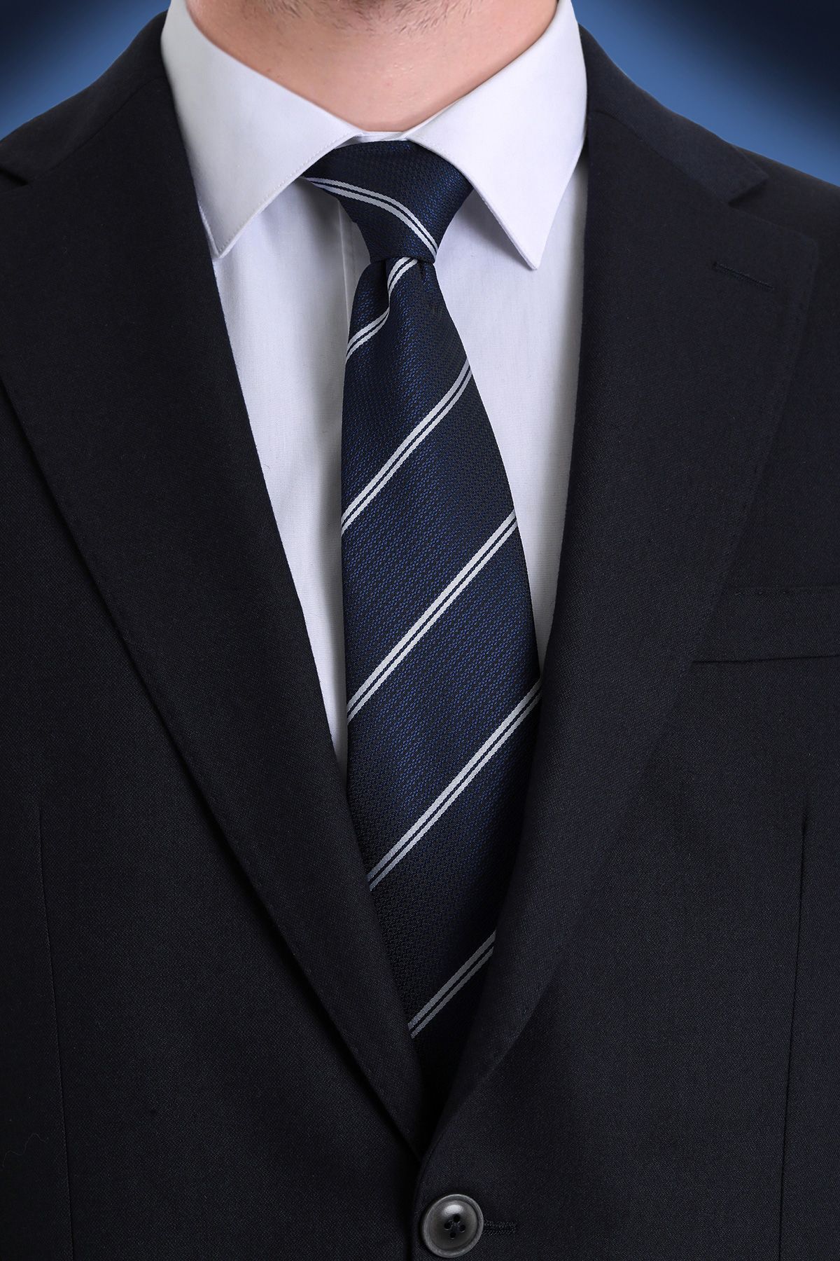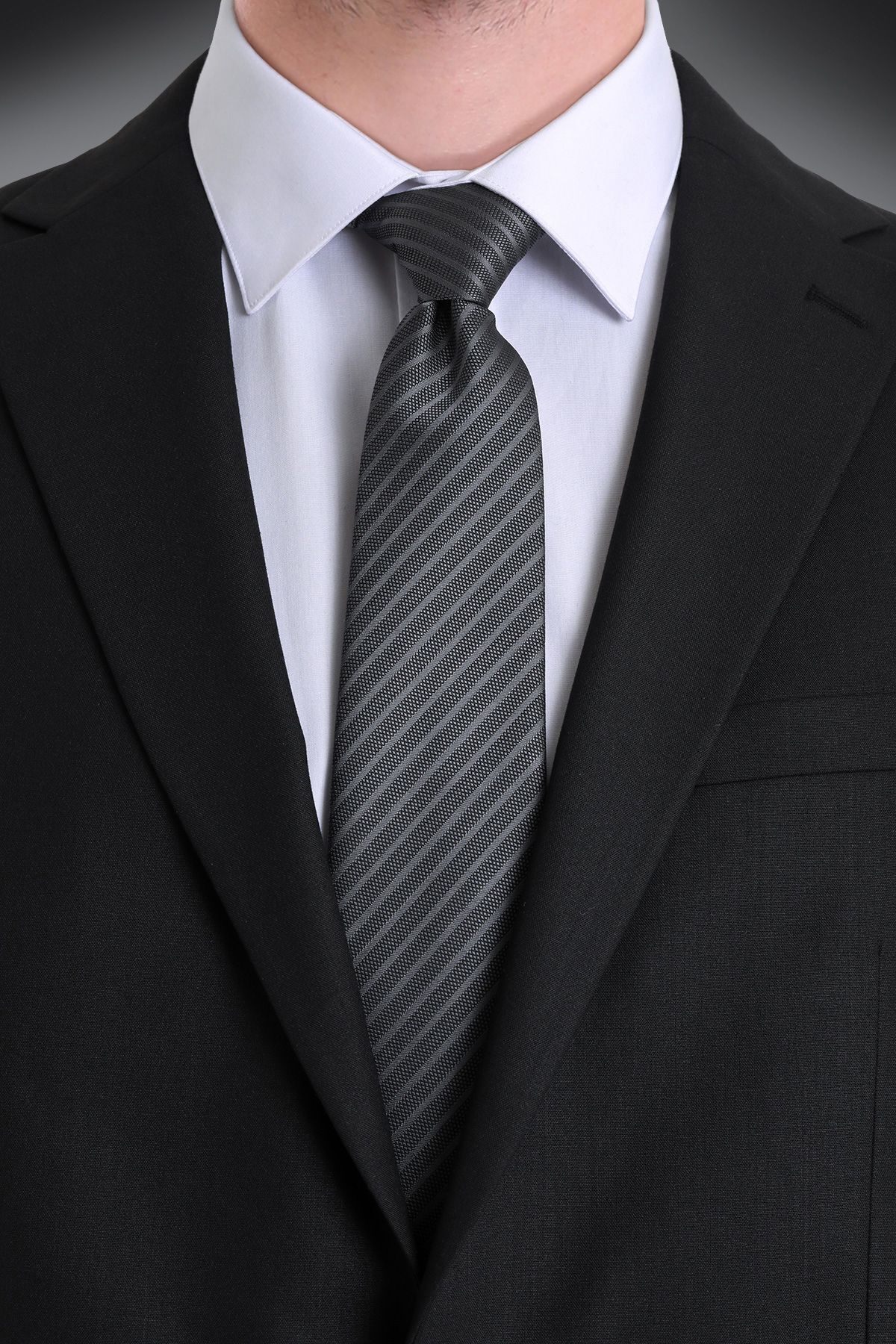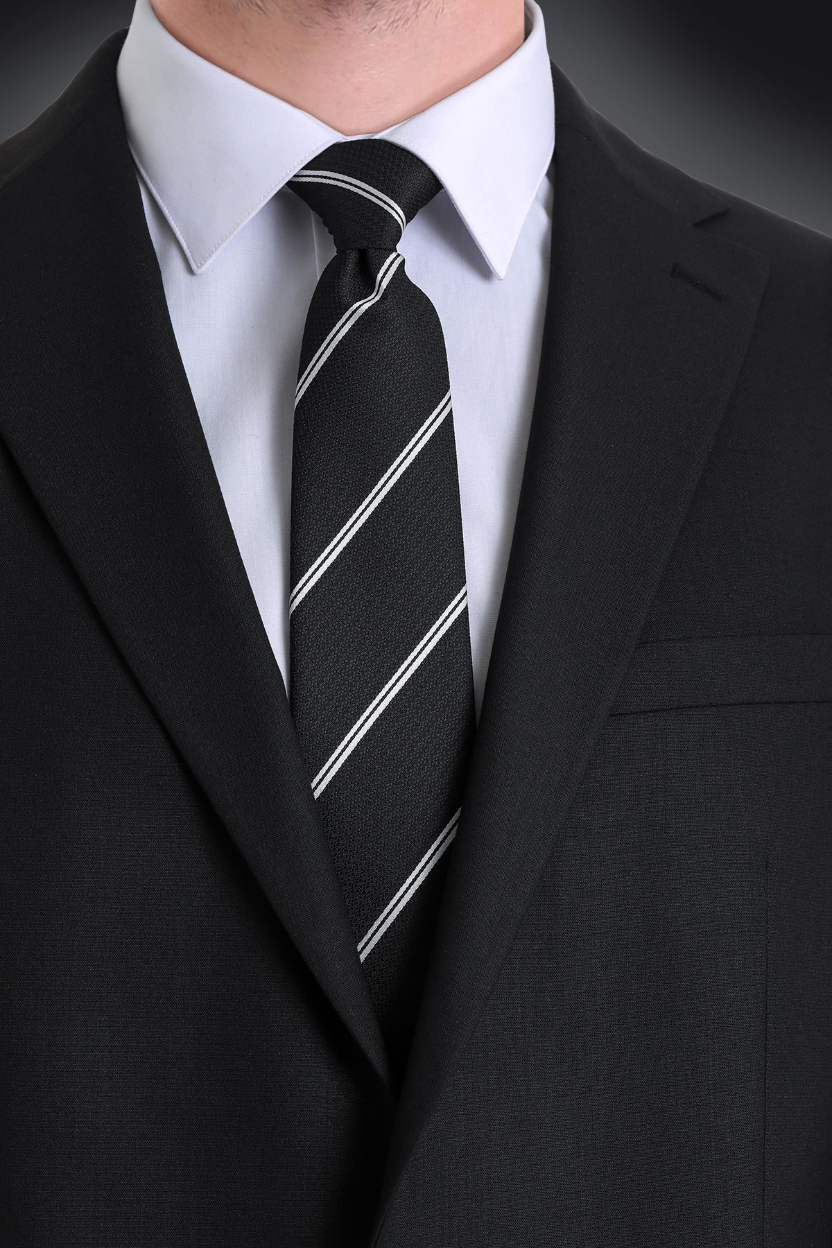 - Şıklığı ve modern çizgileri bir arada sunan siyah çizgili kravat, her gardırobun vazgeçilmez parçası