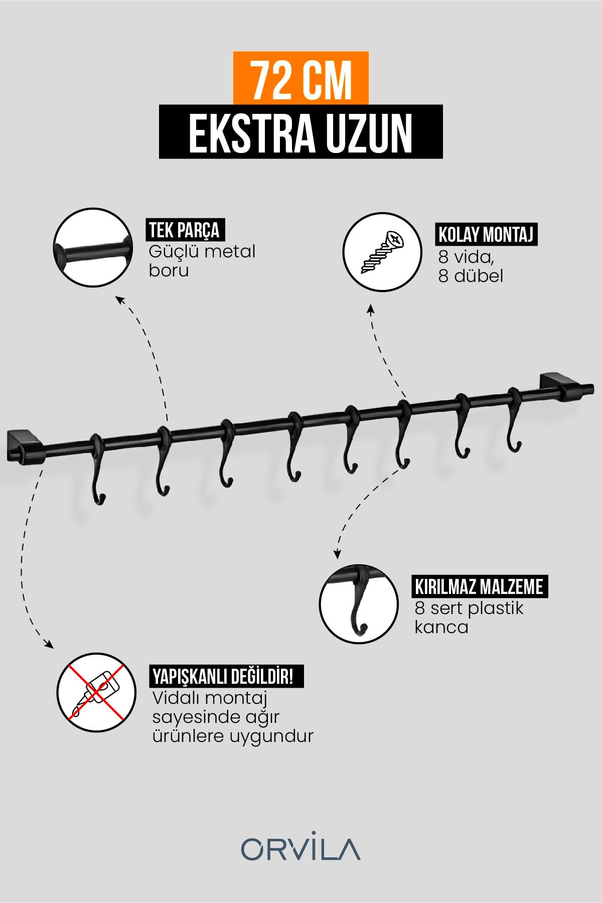 Siyah askı ve 8 adet kanca setinden oluşan bu ürün, hem mutfağınızda çok şık duracak hem de sürekli kullanabileceğiniz bir ürün olacak...