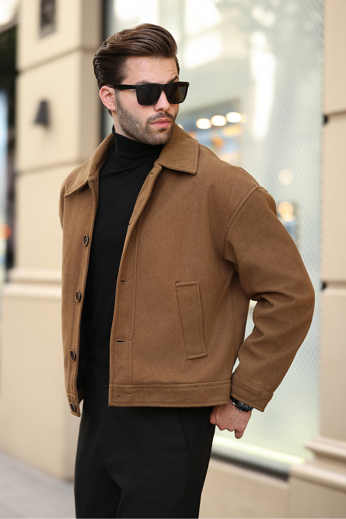 Erkekler için özel olarak tasarlanmış oversize kesimli kaşe kaban ile soğuk havalara tarz katın! Düğmeli ön yüzeyi ile rahat kullanım sunan bu ceket, hem modern hem de klasik bir görünüm arayanlar için ideal.