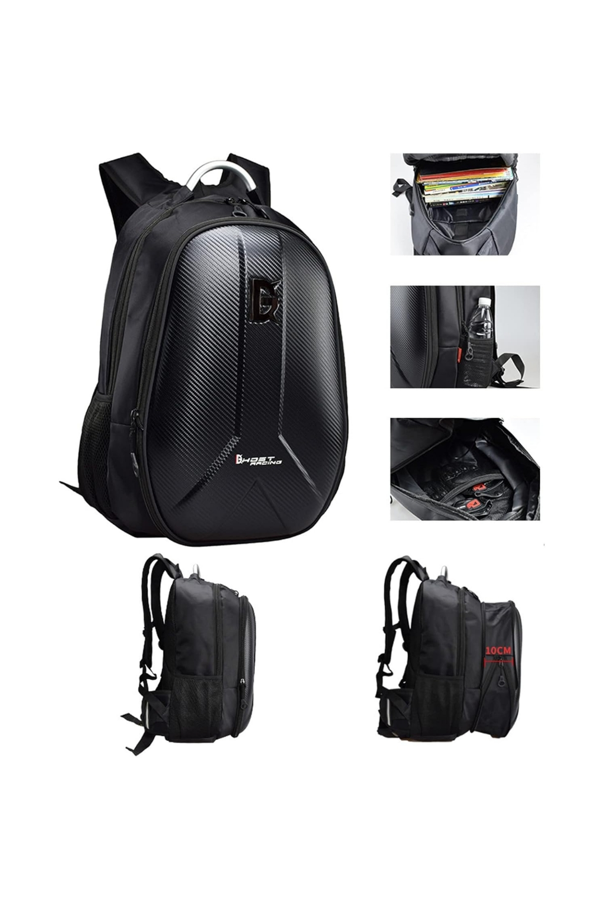 Özellikler: Malzeme: Karbon fiber görünümlü sert dış yüzey ve su geçirmez polyester Boyut: 48 cm x 35 cm x 22 cm Renk: Siyah Kapasite: 30-35 litre Ağırlık: 1,4 kg Özellikler: Laptop bölmesi, su şişesi için yan cep, ergonomik sırt desteği Paket İçeriği: 1 adet sert kabuklu motosiklet sırt çantası 1 adet su geçirmez kılıf