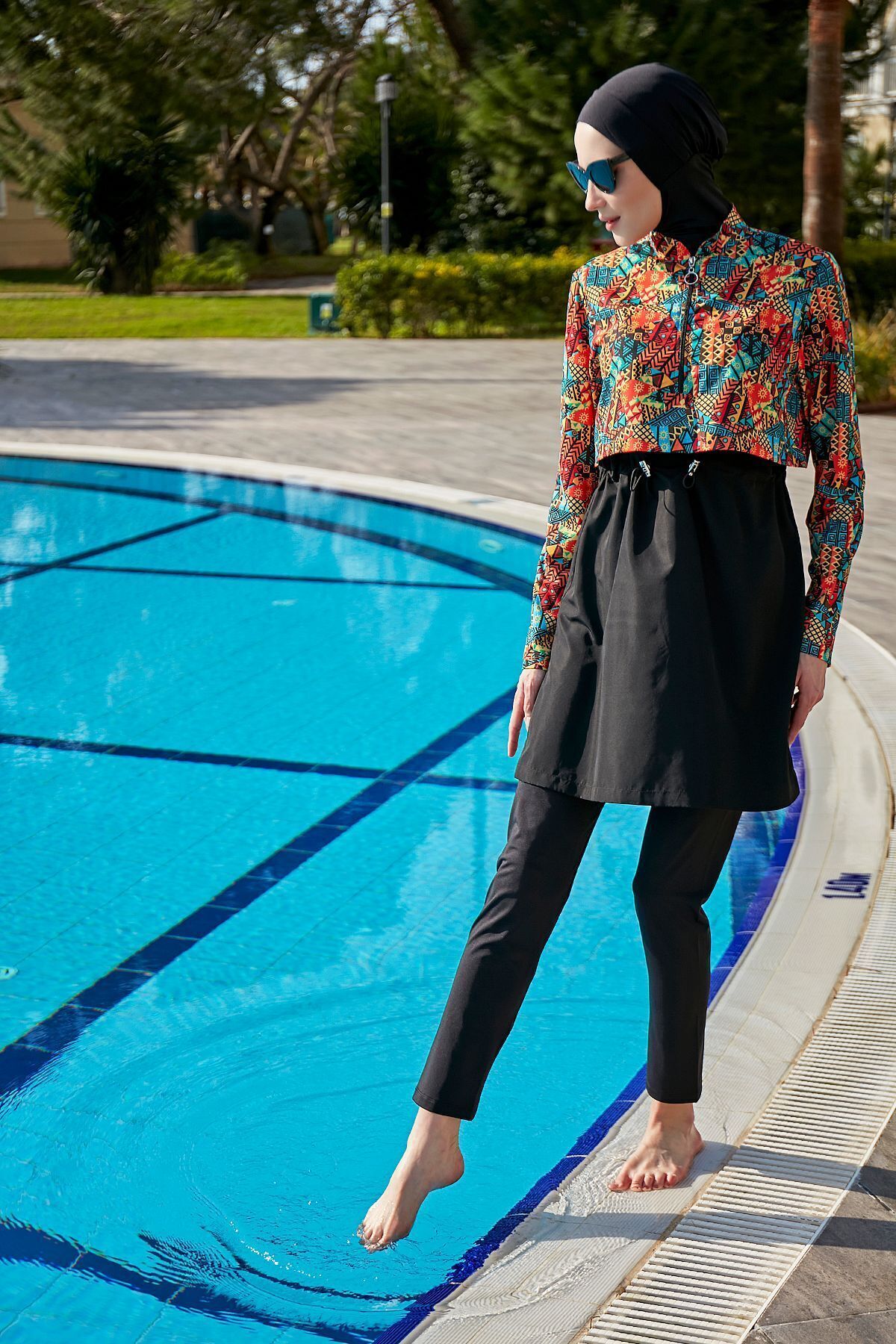 Bedenler:S-M-L-XL-XXL Kumaş Bilgisi: %100 Polyester Ürün İçeriği: Tuniğin gövdesi paraşüt, kolları likralı mayo kumaşından, Likralı kumaş boru paça tayt, Bone ve İç ince büstiyer olmak üzere 4 parçadan oluşmaktadır.