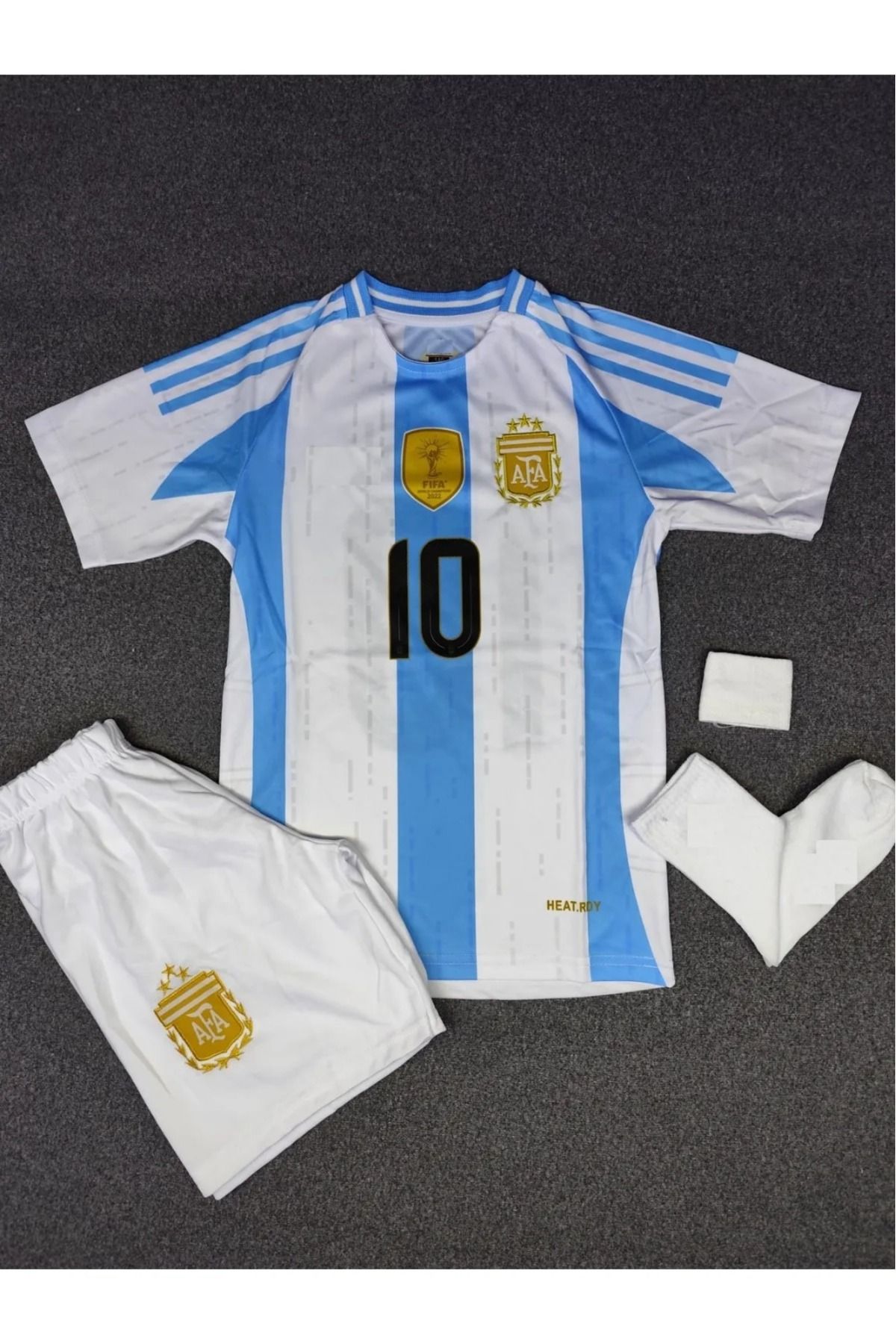 Arjantin Messi Mavi Çubuklu Dünya Kupası 4'lü Set Çocuk Futbol Forması 3 Yıldızlı