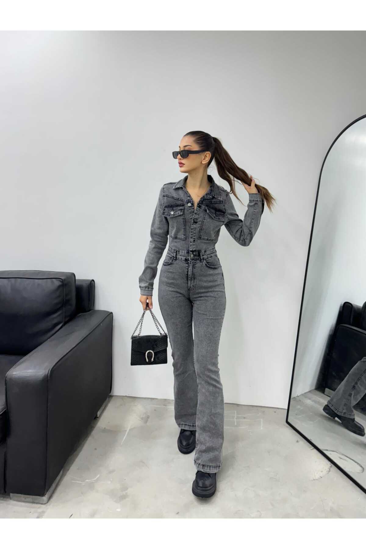 Vovikon KN İspanyol Paça Denim Ceketli Tulum