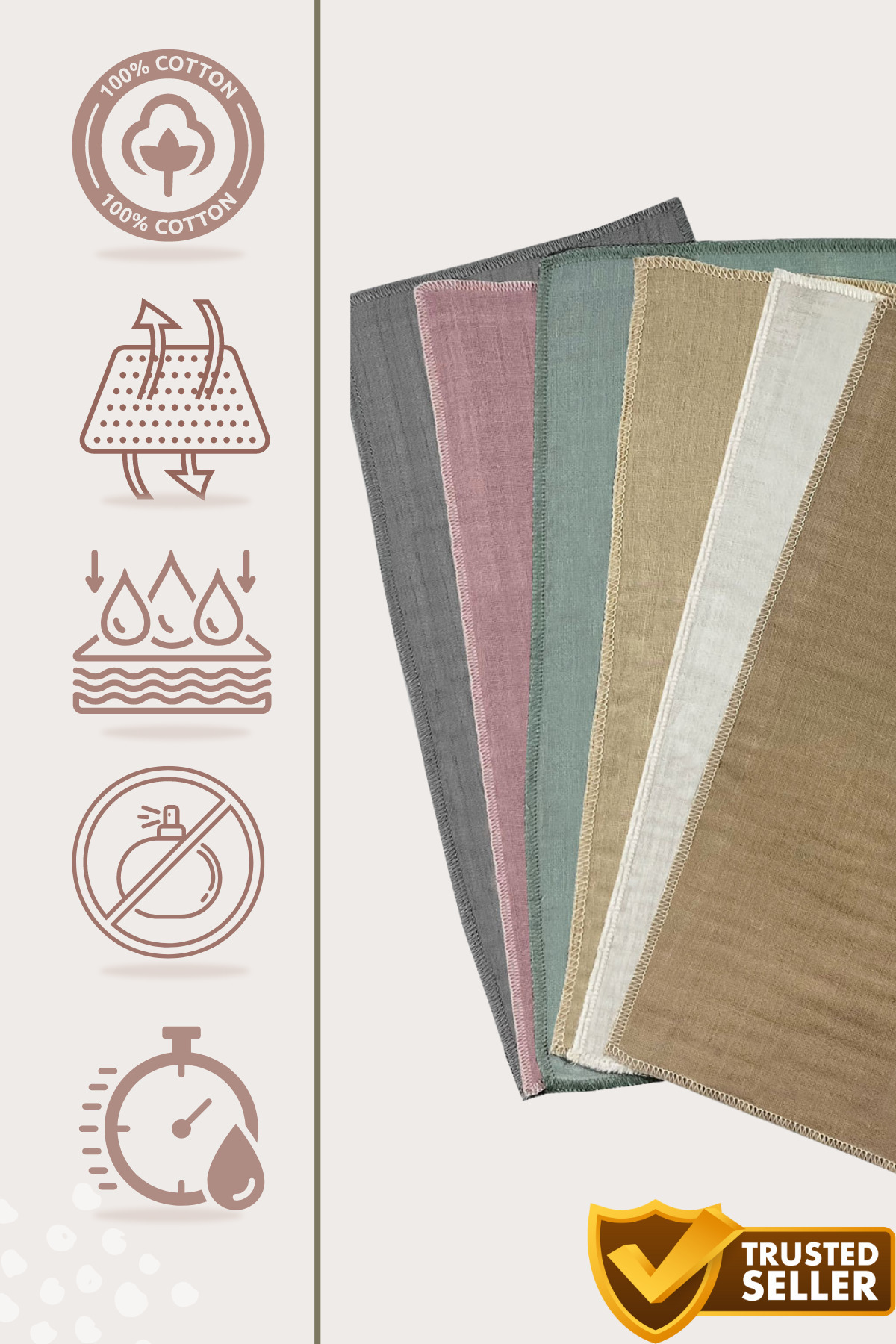 - Yumuşak ve Nefes Alabilir: Pamuklu ve hafif müslin dokusu sayesinde ağız, burun ve yüz temizliği için güvenle kullanılabilir.