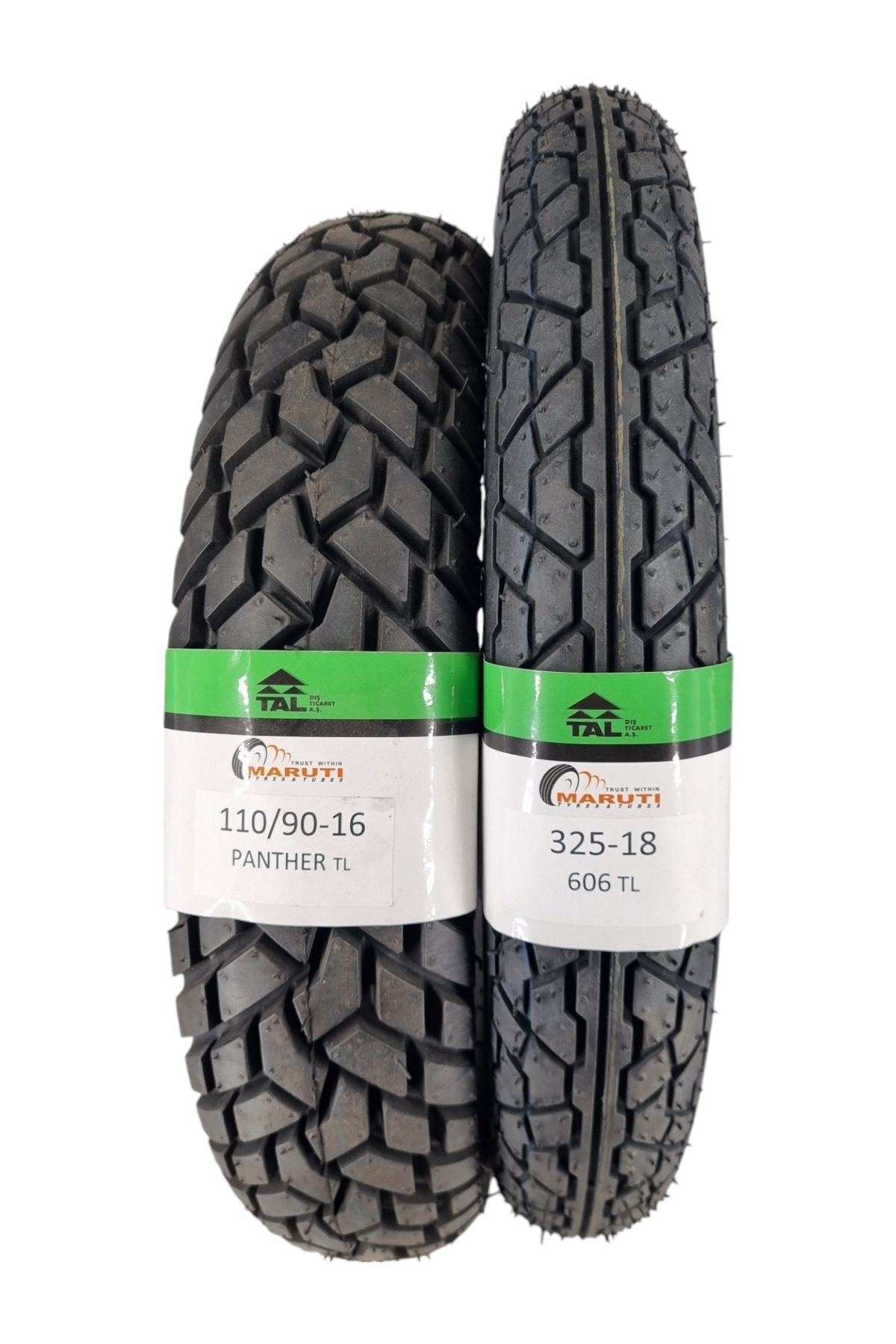 Ürün adı: KANUNI SEYHAN, 110/90-16 TL ve 325-18 TL Dubleks Lastik Set İç lastiksiz tip (İç lastiksiz kullanıma uygundur.