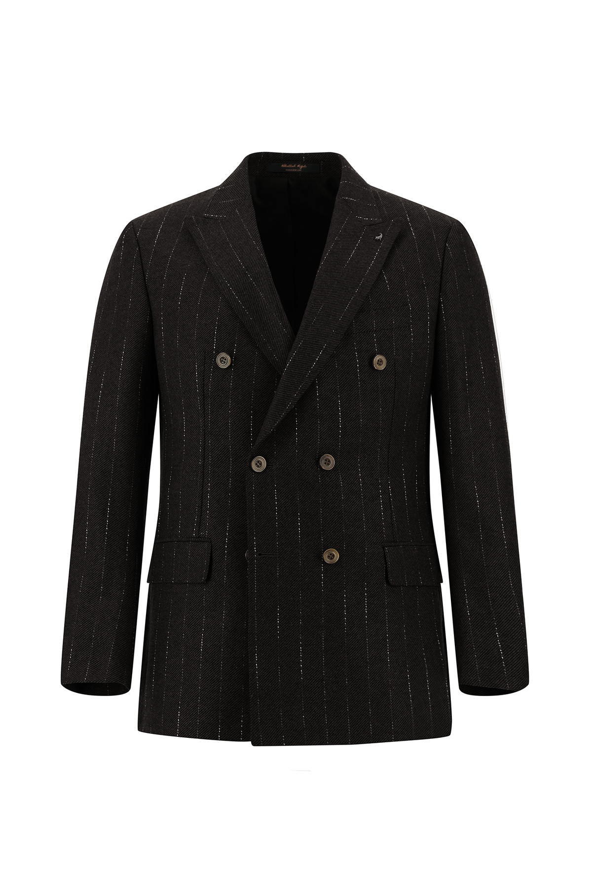 Çizgili desenleri ile zarif bir görünüm sunan Abdullah Kiğılı ceket modelleri, kruvaze tasarımları ile çarpıcı bir stil yaşatıyor.