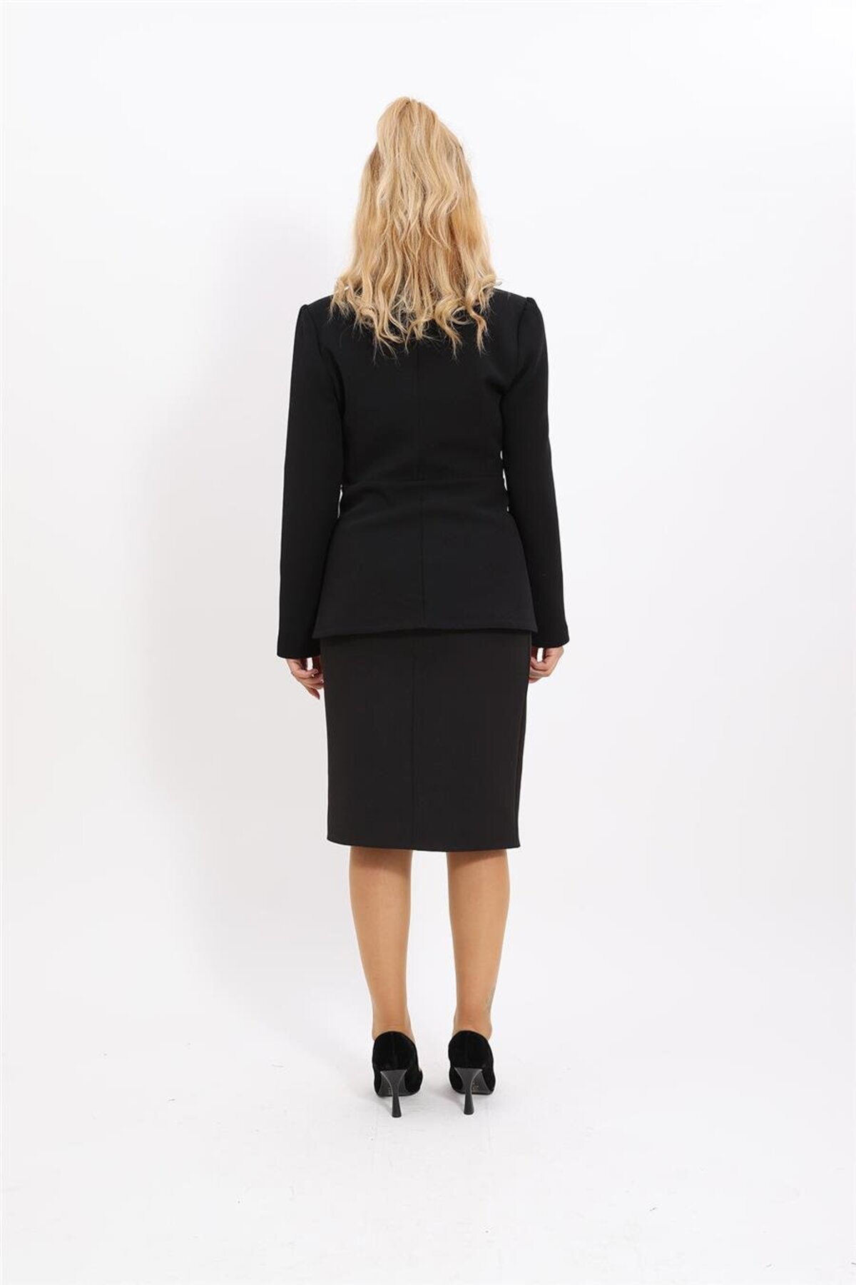 ÜRÜN TANIMI : ERKEK YAKA,KUPLU,BELDEN KESİK,KOL TEPE BÜZGÜLÜ,ASTARLI CEKET,KORSAJ KEMERLİ,ARKADAN FERMUARLI,DÜZ DAR ETEKLİ TAKIM ÜRÜN ÖLÇÜLERİ CEKET : TAM BOY:67 CM KOL BOYU:60 CM KOL BİLEK GENİŞLİĞİ:12 CM ÜRÜN ÖLÇÜLERİ ETEK : TAM BOY:65 CM ETEK UCU GENİŞLİĞİ:46CM DİR.