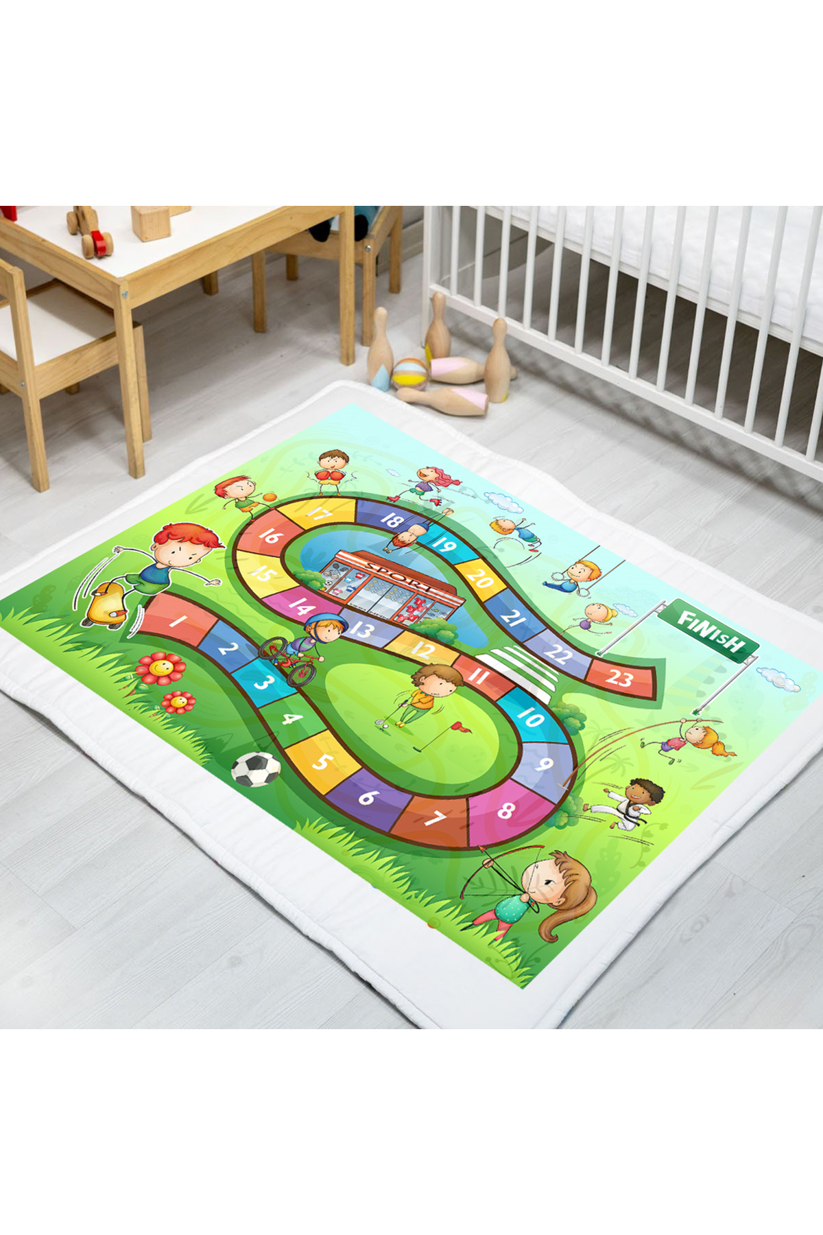 - 100 x 150 cm boyutlarındaki bu kaydırmaz oyun halısı, çocukların güvenle oynayabileceği geniş bir alan sunar.