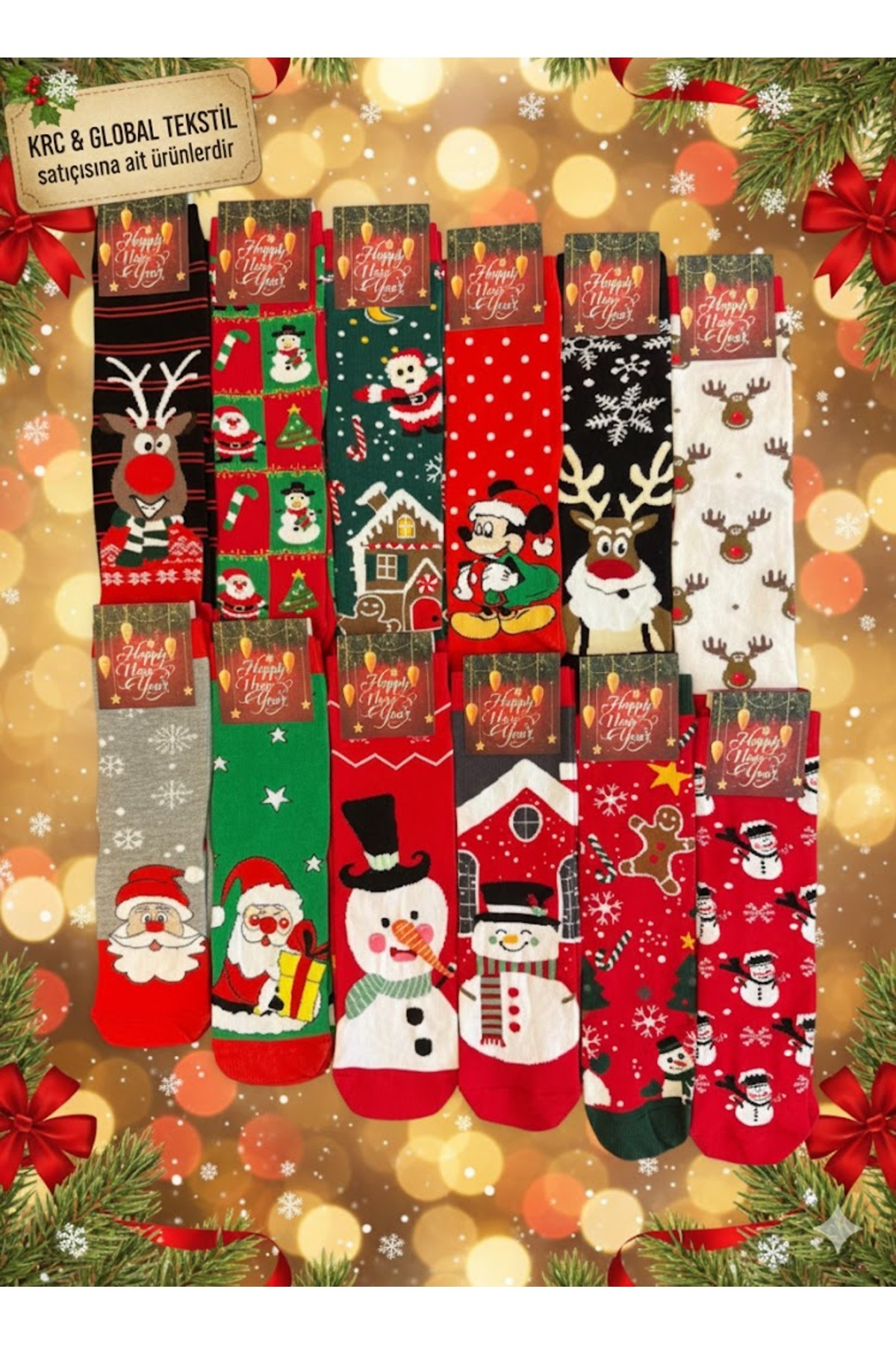 - Yılbaşı ruhunu ayaklarınıza taşıyan 12'li çorap seti, Noel temalı desenleriyle dikkat çeker.