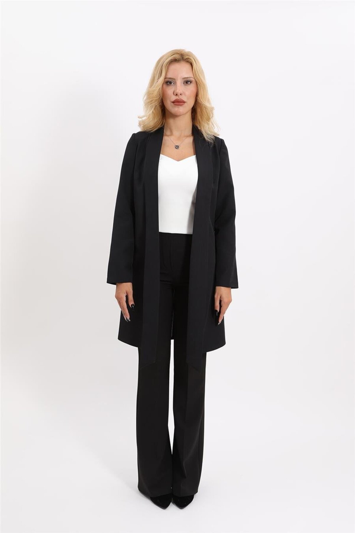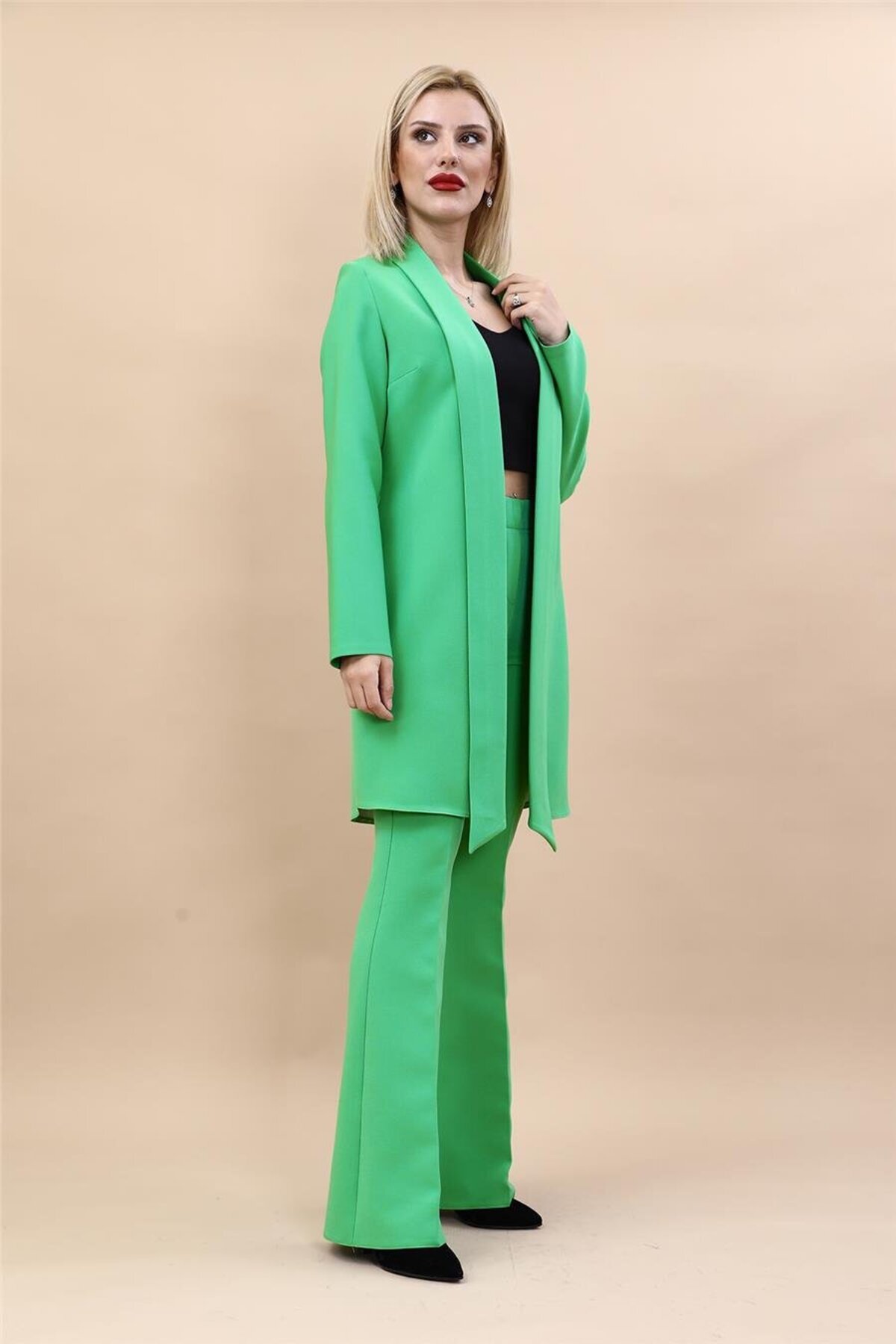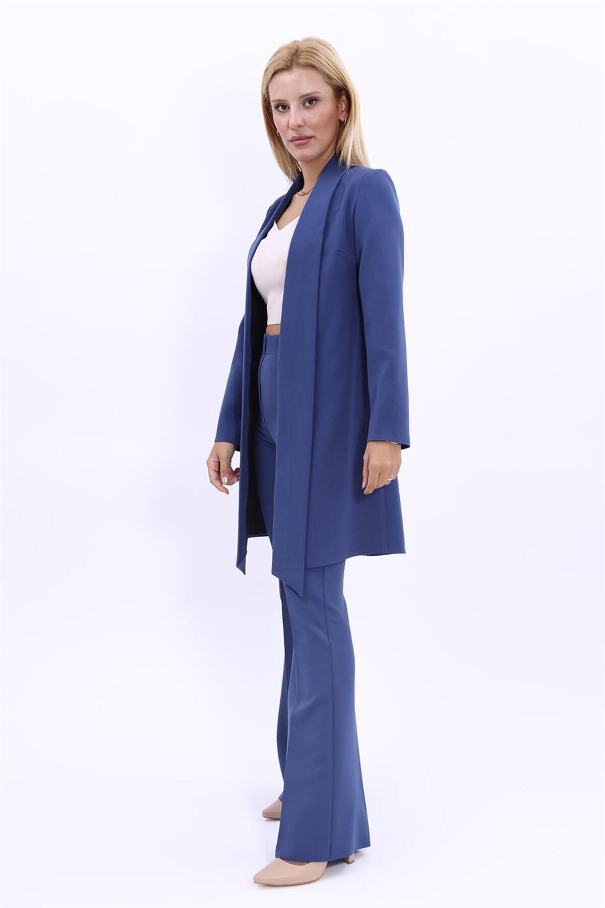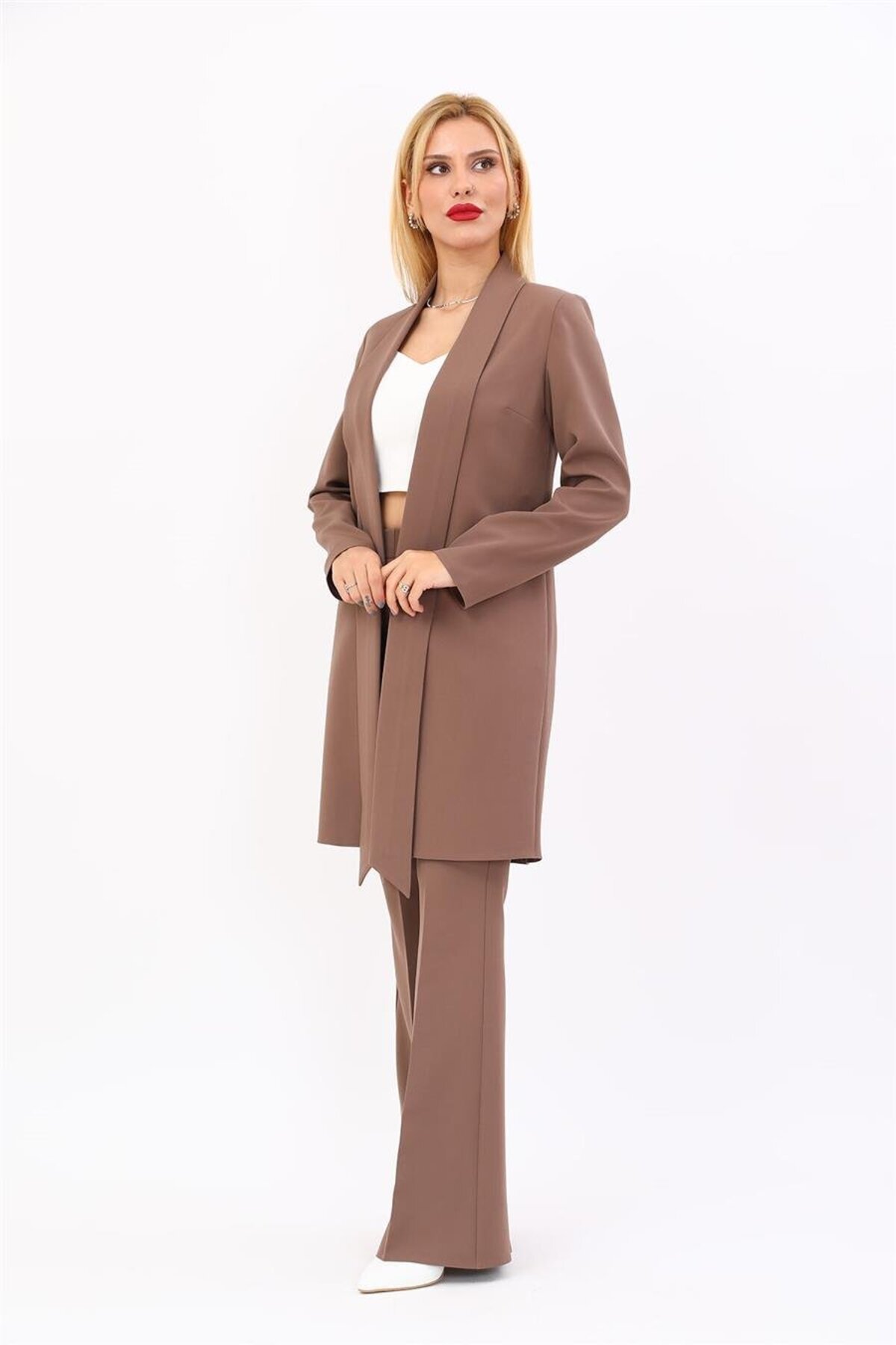 👗 Manken Ölçüleri: 36 Beden – Boy: 170 cm | Göğüs: 85 cm | Bel: 67 cm | Basen: 92 cm 💎 Astarsız uzun ceket ve ispanyol paça pantolon tasarımıyla ofiste veya özel davetlerde sofistike bir şıklık sağlar.